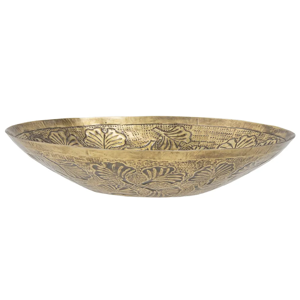 Dieses entzückende Tablett Deniz aus Aluminium von Bloomingville Cozy verschönert jegliche Oberflächen in deinem Zuhause. Unter der goldenen Lackierung befindet sich eine Prägung aus kleinen Punkten und Ginkgoblättern. Du kannst auch lecke Speisen für deine Gäste mithilfe dieses Tabletts servieren.