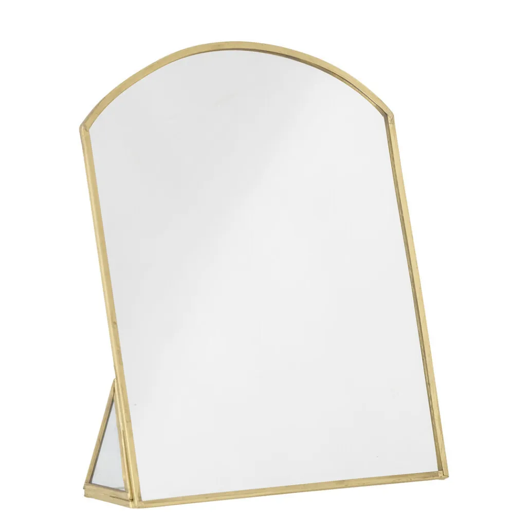 Inge Spiegel, Brass, Glas von Bloomingville aus Dänemark. Der Inge Spiegel von Bloomingville ist ein eleganter Tischspiegel mit schönem Messingrahmen und romantischem Look.
