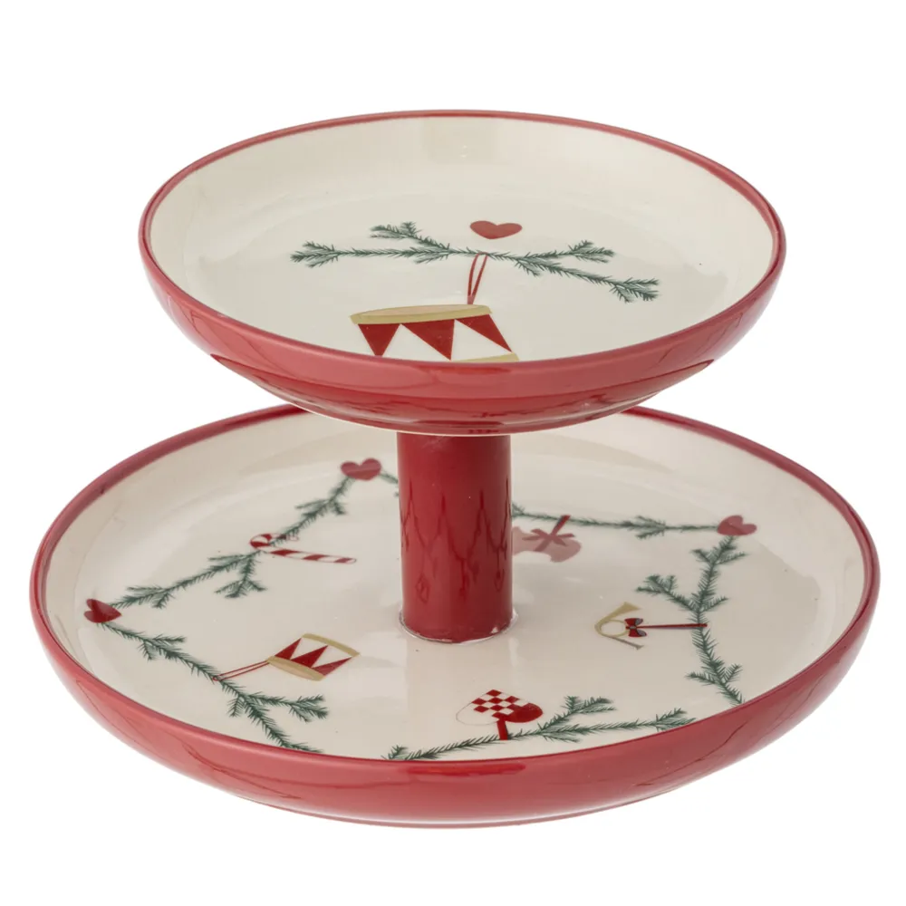 Weihnachts-Etagere Yule, Natur, Steingut von Bloomingville aus Dänemark. Die Yule Etagere von Bloomingville ist eine wunderschöne Ergänzung für jeden Weihnachtstisch. Diese Etagere ist aus Steingut gefertigt und mit klassischen Weihnachtsmotiven in warmen Rot- und Grüntönen verziert. Sie kann sowohl zum Servieren köstlicher Weihnachtsspezialitäten als auch als dekoratives Element auf einem Weihnachtstisch verwendet werden.