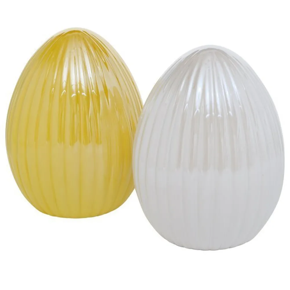 Dieser schöne Dekoaufsteller Leyo von Boltze ist eine klassische Dekoration in der Osterzeit. Das Osterei aus Dolomit Keramik ist in gelb oder weiß glasiert, was es wunderbar zu Frühlingsfarben wie hell grün, rosa oder hellblau passen lässt. Lasse die Figur für sich wirken oder stelle sie in eine Dekoschale mit Moos und Zweigen.
