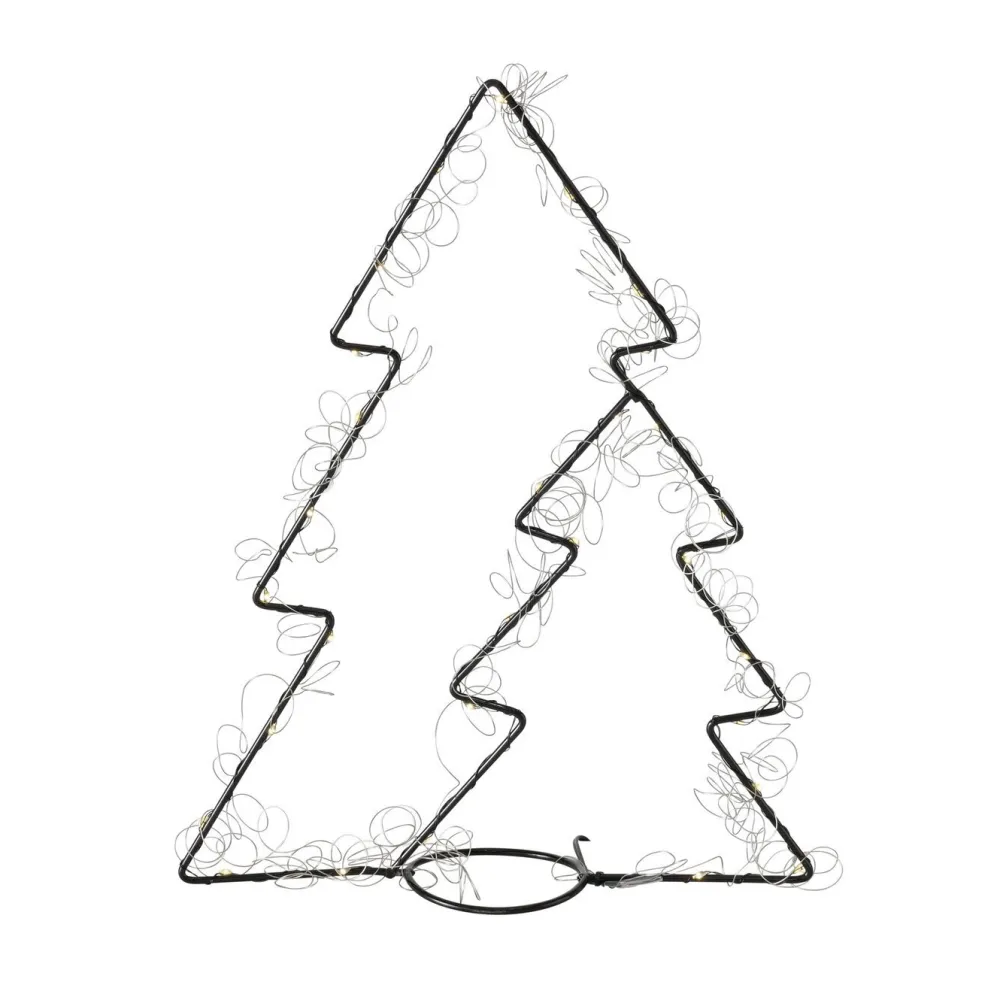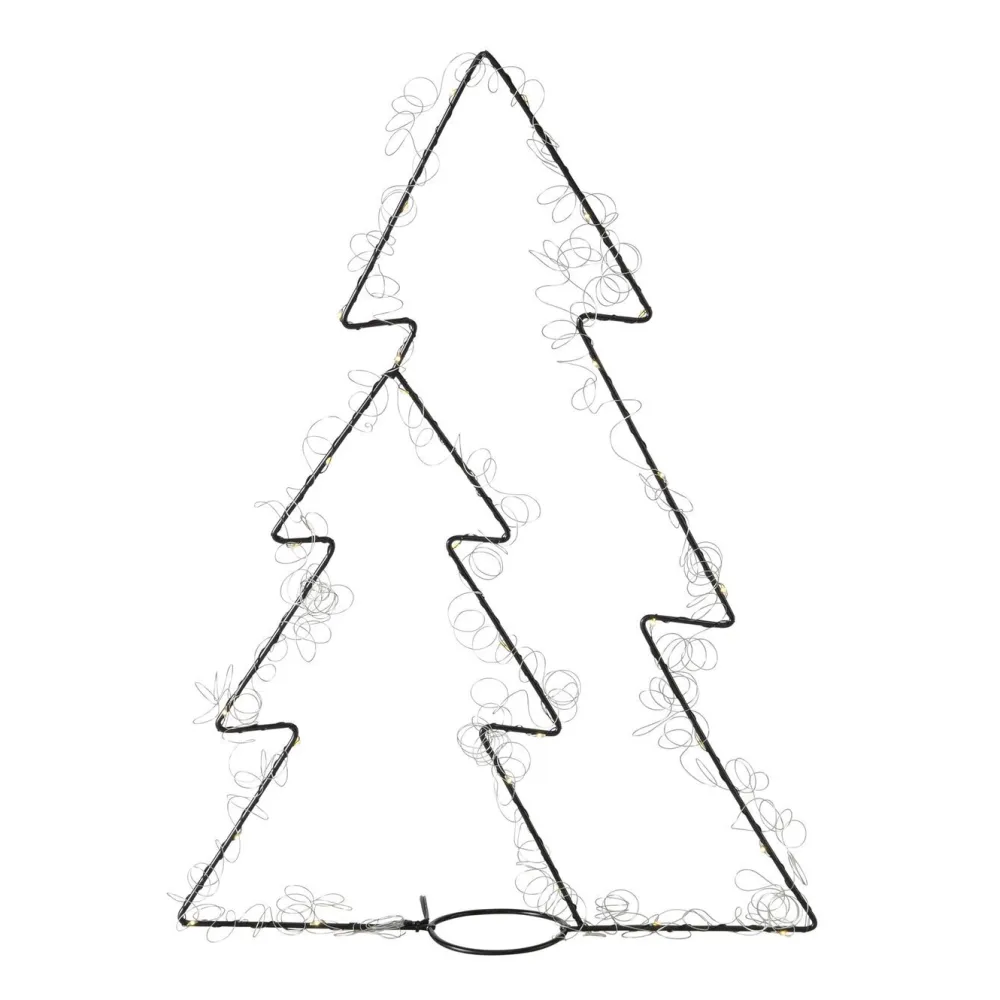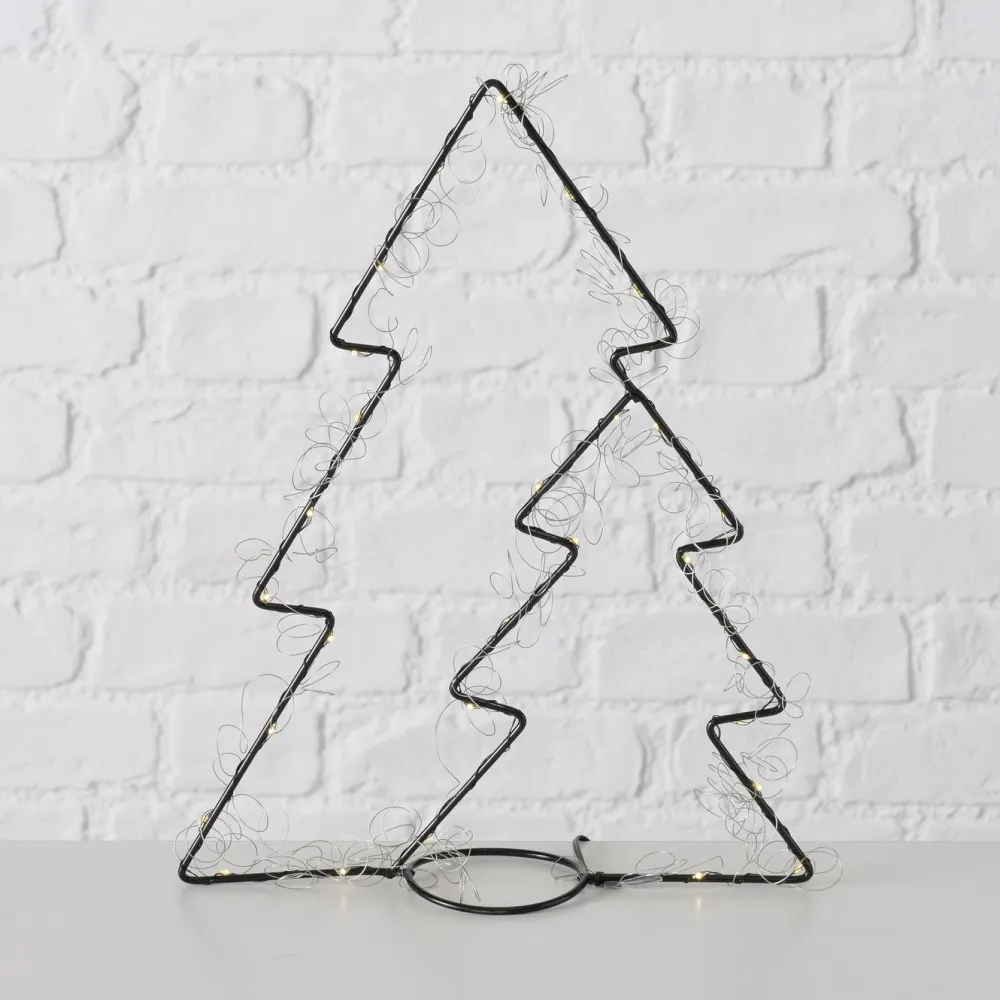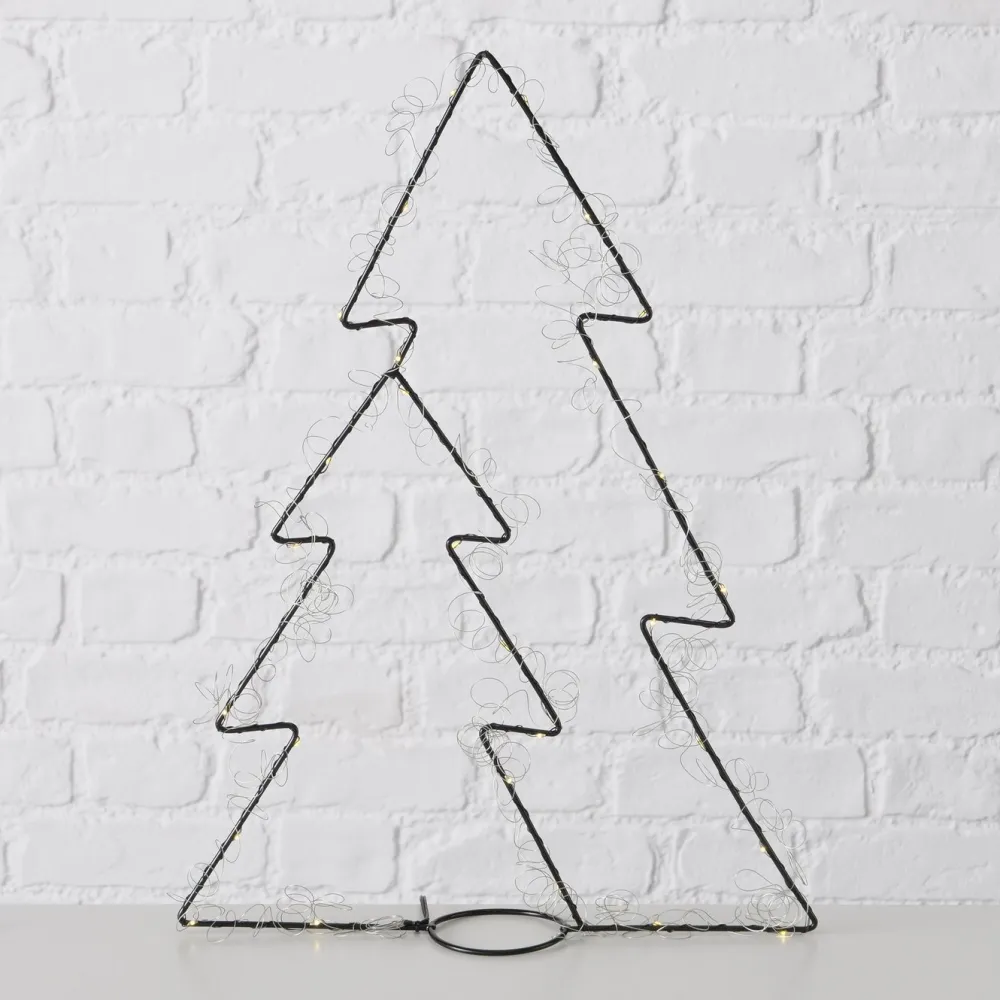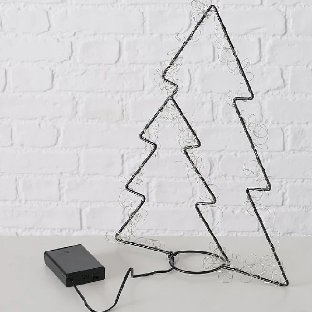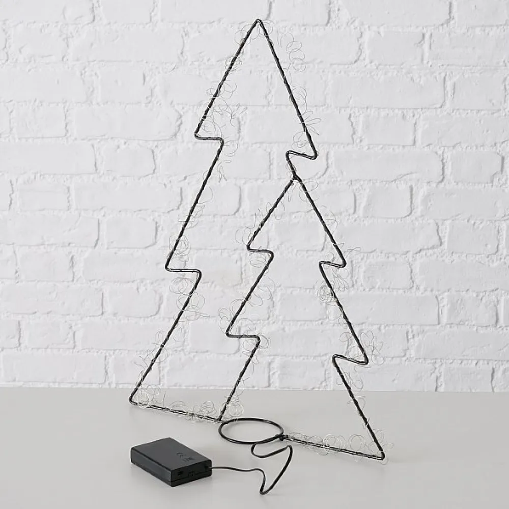 Ein minimalistischer und beleuchteter Tannenbaum aus Eisen.