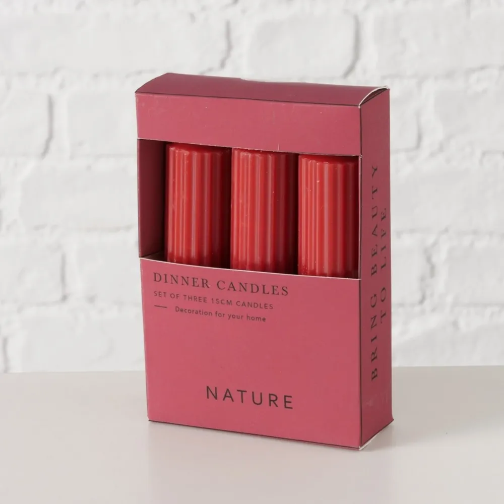 Boltze Dicke Stabkerzen Riffly Ø 3,5 cm, 3er Set
