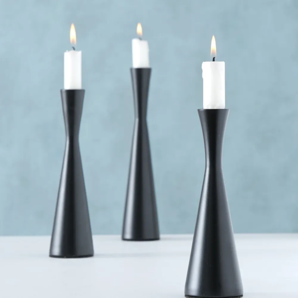Das durchdachte 3-teilige Design ermöglicht dir vielseitige Dekorationsmöglichkeiten – ob als harmonische Gruppe arrangiert oder einzeln als Akzent platziert. Die robuste Pulverbeschichtung macht diese Kerzenhalter nicht nur langlebig, sondern verleiht ihnen auch ihre charakteristische matte Oberfläche, die typisch für nordische Wohnkultur ist.
