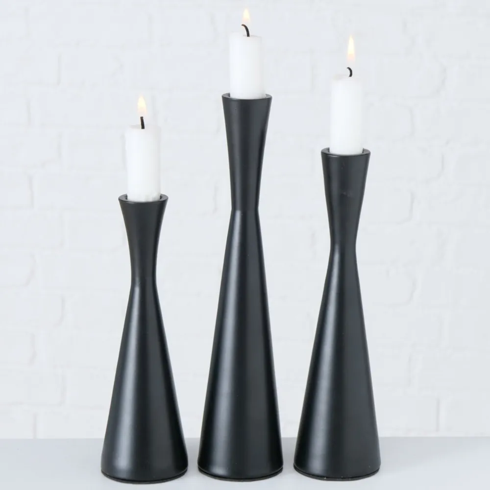 Der Boltze Kerzenleuchter Cone im 3-teiligen Set bringt skandinavisches Design in dein Zuhause und verwandelt jeden Raum in eine gemütliche Wohlfühloase. Diese eleganten Kerzenständer aus hochwertigem, pulverbeschichtetem Eisen überzeugen durch ihre minimalistische Formgebung im Simply Nordic Stil und setzen deine Stabkerzen perfekt in Szene.