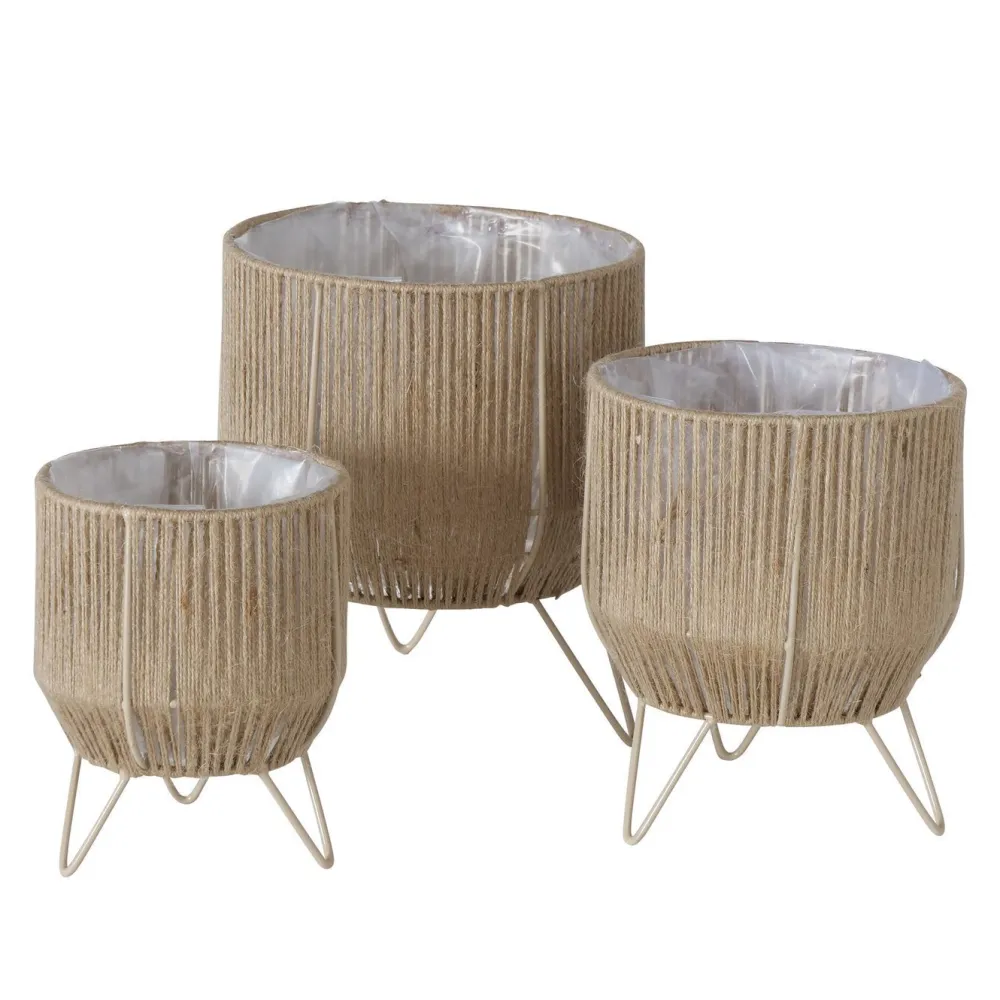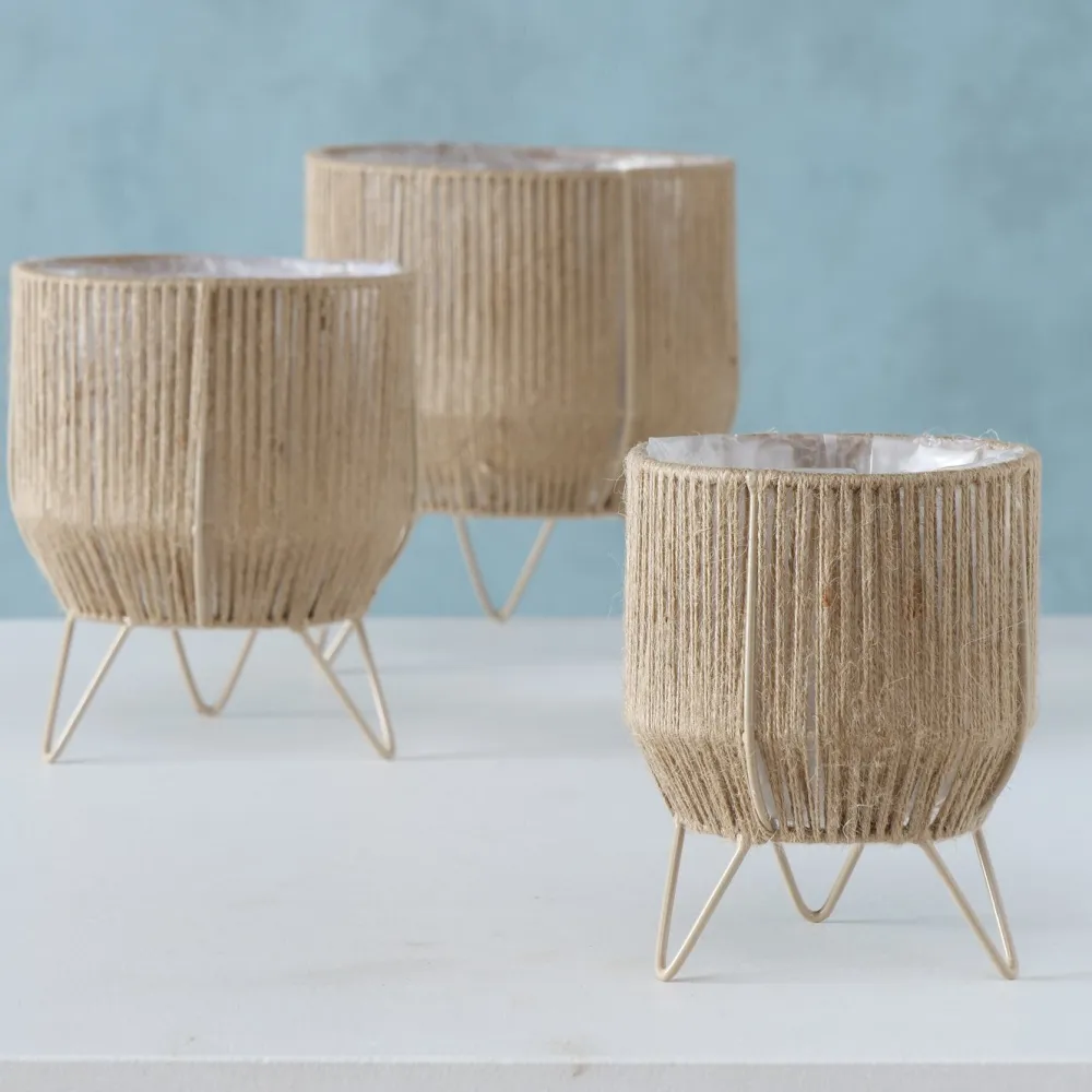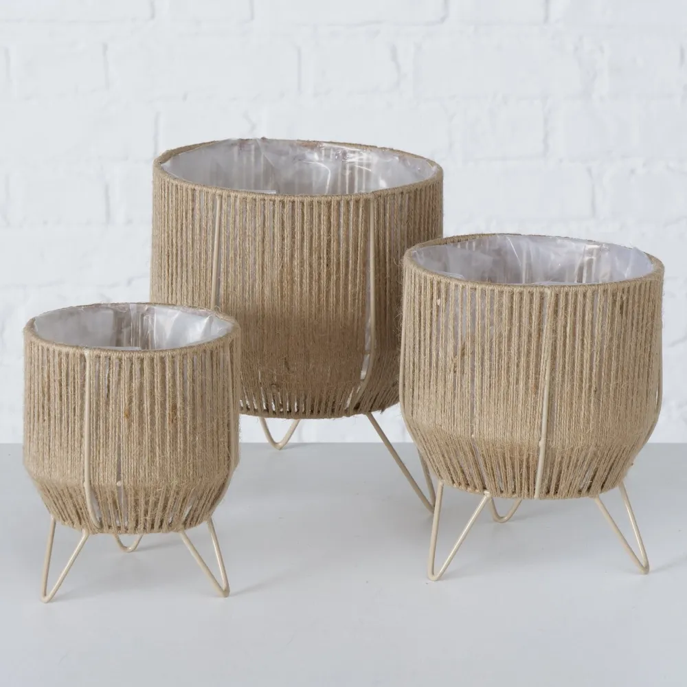 Wunderbares Pflanzkorb 3er Set Elvy aus der Serie All about Nature von BOLTZE, hergestellt aus Eisen und Jute.