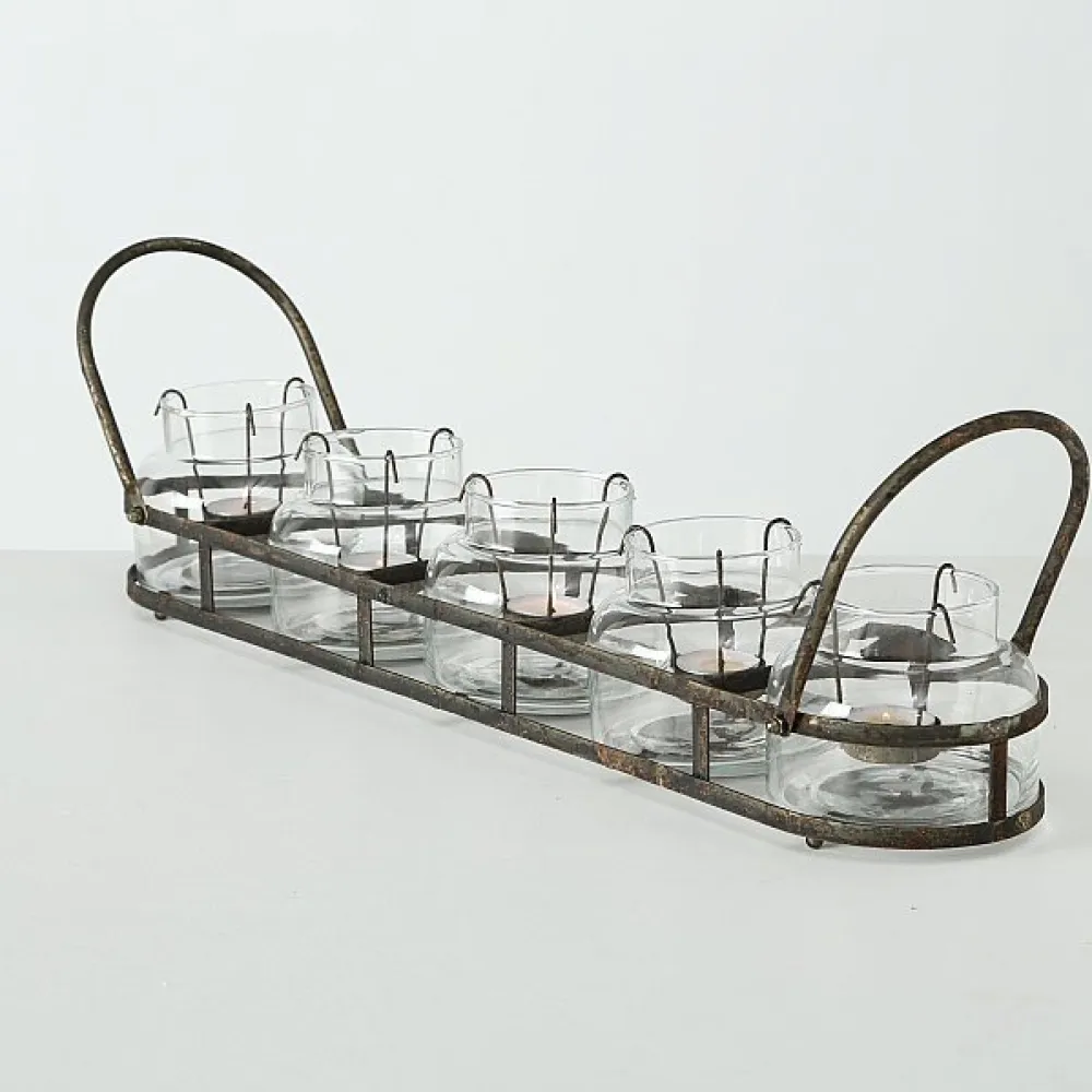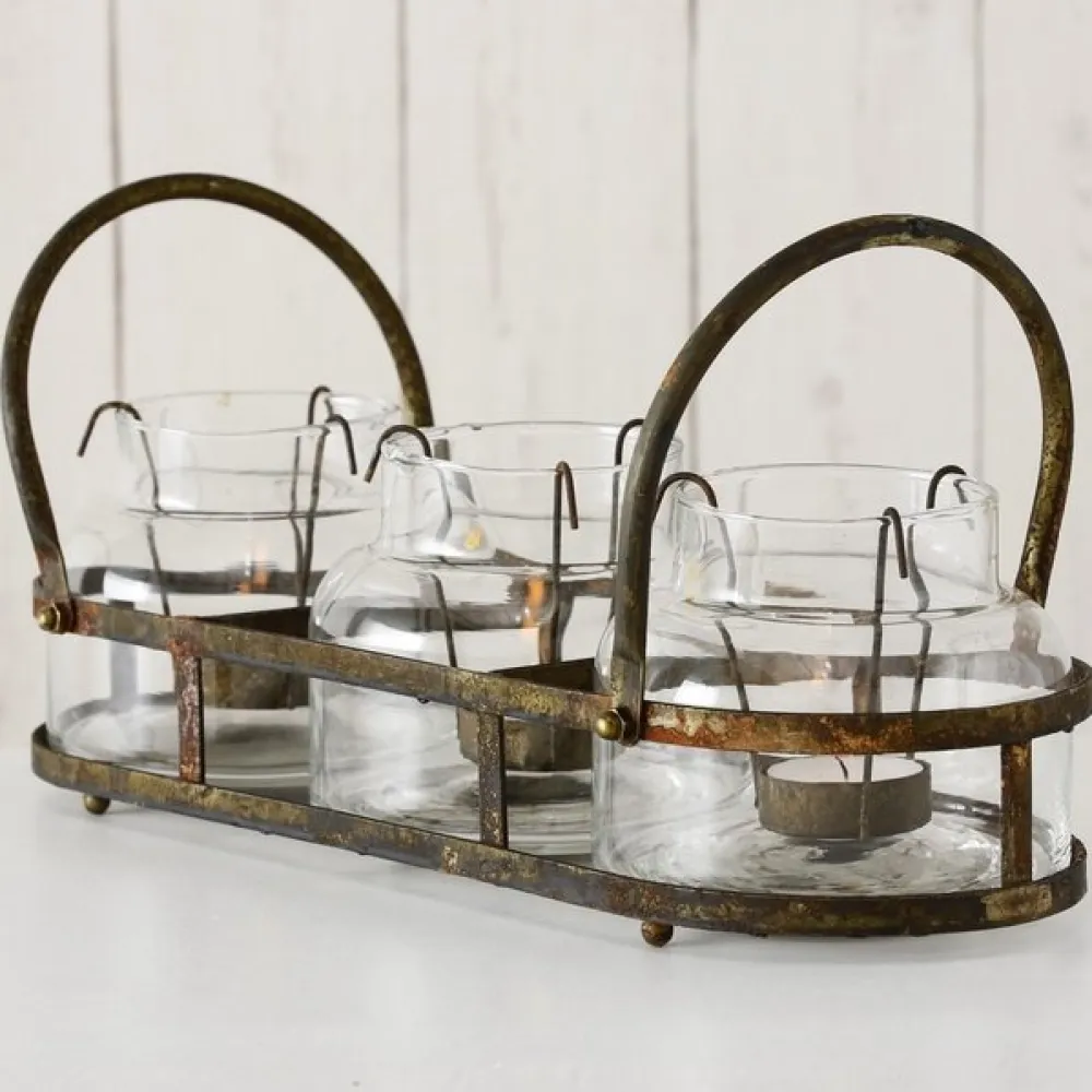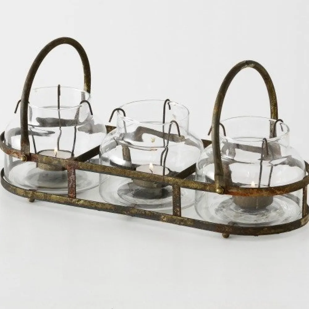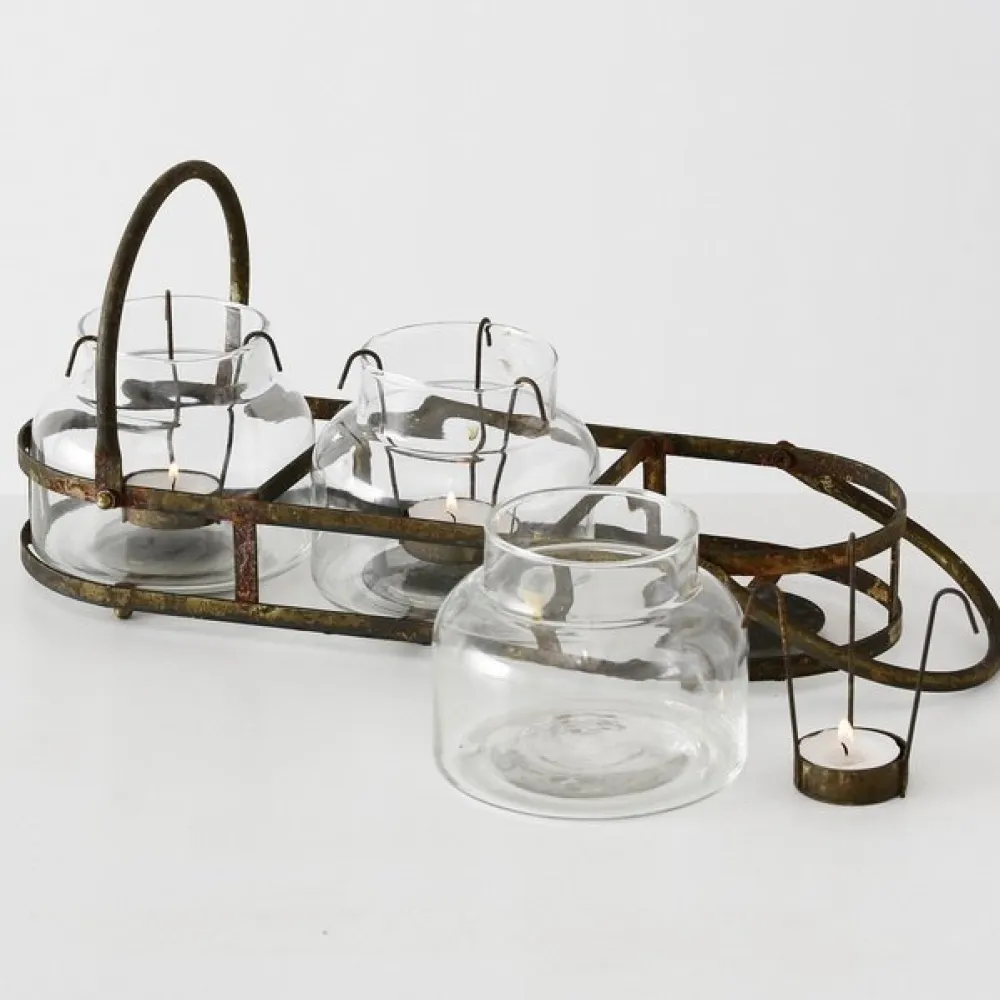 Wundervoller Teelichthalter Zuma aus Eisenund Glas im Shabby Used Look von BOLTZE.