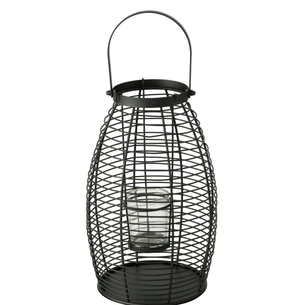 Es besteht aus Eisen und hat eine matte Optik. Das Windlicht hat einen Einsatz für eine Kerze und kann wunderbar im Wohnzimmer, im Wintergarten oder im Schlafzimmer mit anderen modernen Wohn-Accessoires kombiniert werden.