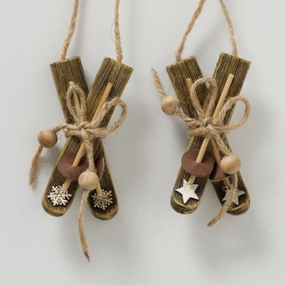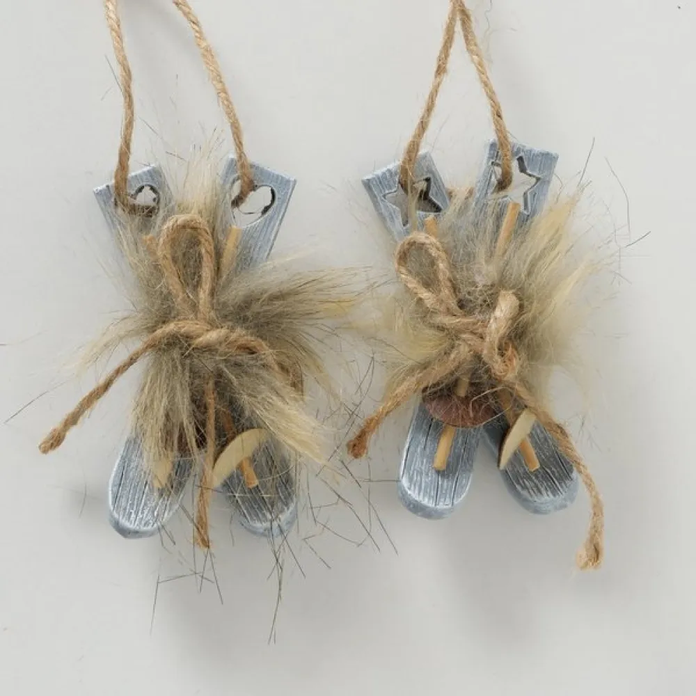 Der schöne Dekoanhänger Kory im 2er Set aus der Serie Casual Winterdays von Boltze verschönert deinen Weihnachtsbaum oder -kranz. Wahlweise in grau oder braun besitzen die kleinen Skier niedliche Details wie Sterne, Schneeflocken, Flausch oder Herzen.