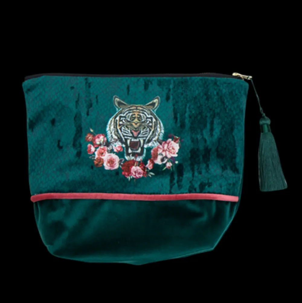 Bewahre deine liebsten kosmetischen Produkte in dieser stylischen Kosmetiktasche von byRoom auf. Die Kosmetiktasche ist in zwei Varianten erhältlich und du kannst zwischen einem dunkelgrünen Modell mit Tigerprint oder einem bordeauxroten Täschchen mit Schlangenprint wählen. Die Tasche ist traumhaft weichem Samt und ist an der Seite jeweils mit einer Quaste versehen. Nun stellt sich nur noch die Frage: Weckst du den Tiger in dir oder verfällst du der Schlange?