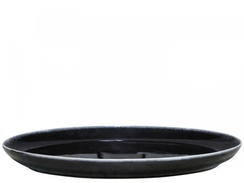 Tolles Calais Tablett oval von Chic Antique Dänemark. Aus Steingut in der Farbe kohle oder schwarz gefertigt.