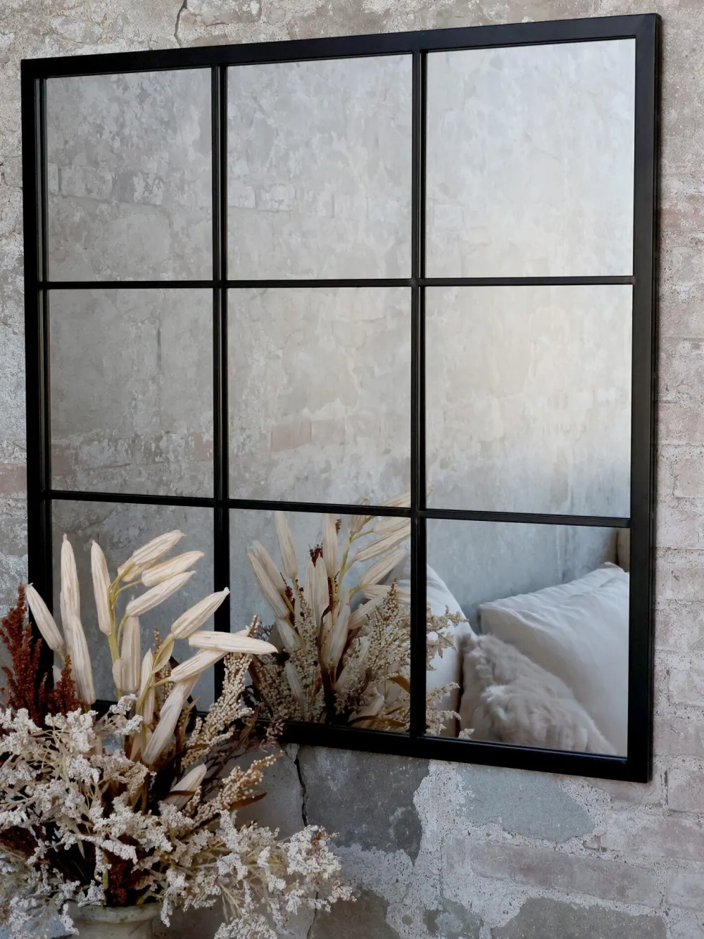 Verwende den Factory-Spiegel im Flur, im Badezimmer oder als wunderschönen dekorativen Spiegel im Wohnzimmer, um mehr Licht und ein Gefühl von Weite zu schaffen.