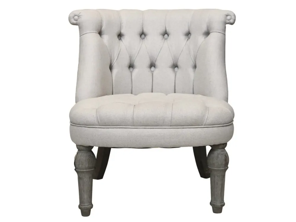 Schöner Französischer Sessel mit Leinenstoff und Eichenholzfüße von Chic Antique Dänemark. Chic Antique Möbel Online Shop bei SKANDEKO.