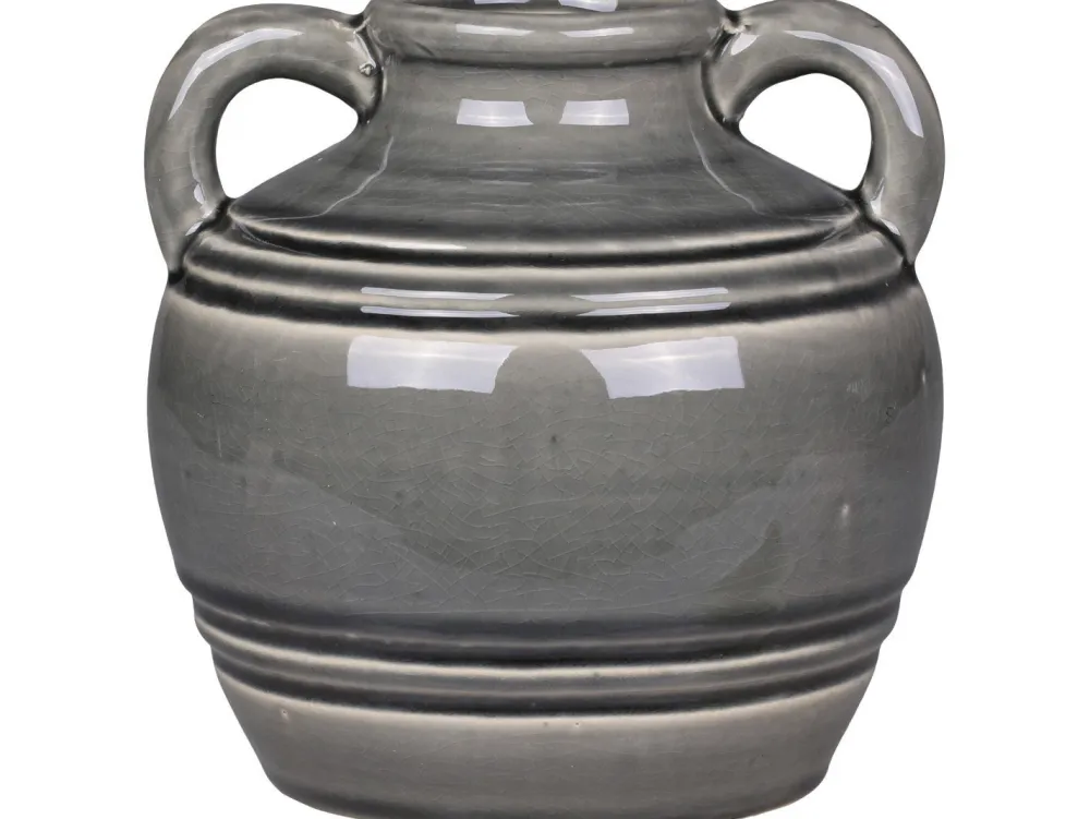 Dieser schöne Krug mit zwei Henkeln von Chic Antique ist auch ohne Schnickschnack ein echter Hingucker! Durch sein eingekerbtes Streifenmuster erfährt der Krug in grauer Farbe eine Tiefe und Mehrschichtigkeit, die seine Betrachter begeistern. Du kannst den Krug natürlich ebenfalls mit wundervollen Blumen oder Zweigen ausstatten. Mit einer Größe von H16/Ø16 cm passen verschiedenste Blumenarten zu diesem eleganten Dekostück aus Keramik.