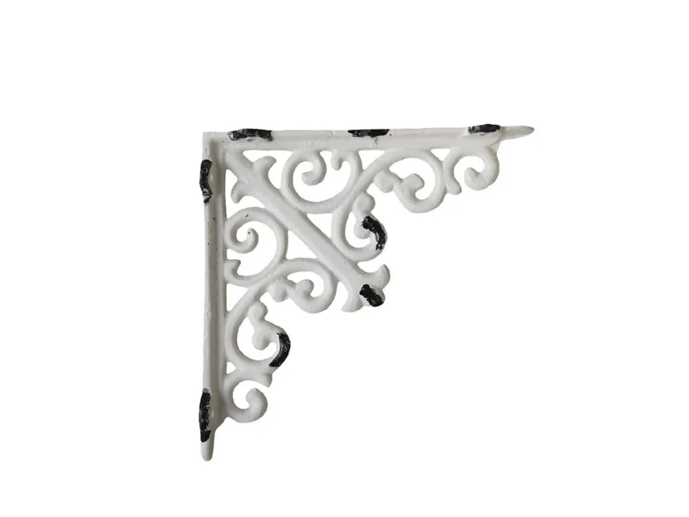 Dieser verspielte Regalträger französische Lilie von Chic Antique, Dänemark in den Maßen H15/B15 cm und in der Farbe antik creme eignet sich perfekt zum stilvollen Anbringen von Holzbrettern.