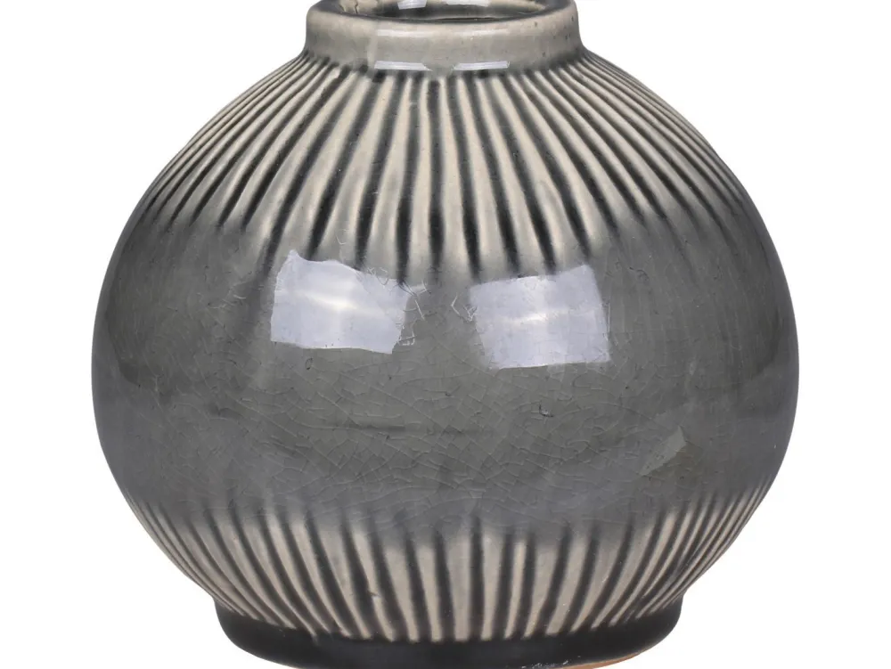 Sieht diese kugelige Vase mit ihrem gestreiftem Muster nicht einfach fantastisch aus? Die Vase gehört zu den Keramik Produkten von Chic Antique und zaubert in grauer Farbe mit weissen Akzenten einen herrlichen Look auf deine Fensterbank, das Nachtschränkchen oder die Kommode im Eingangsbereich.