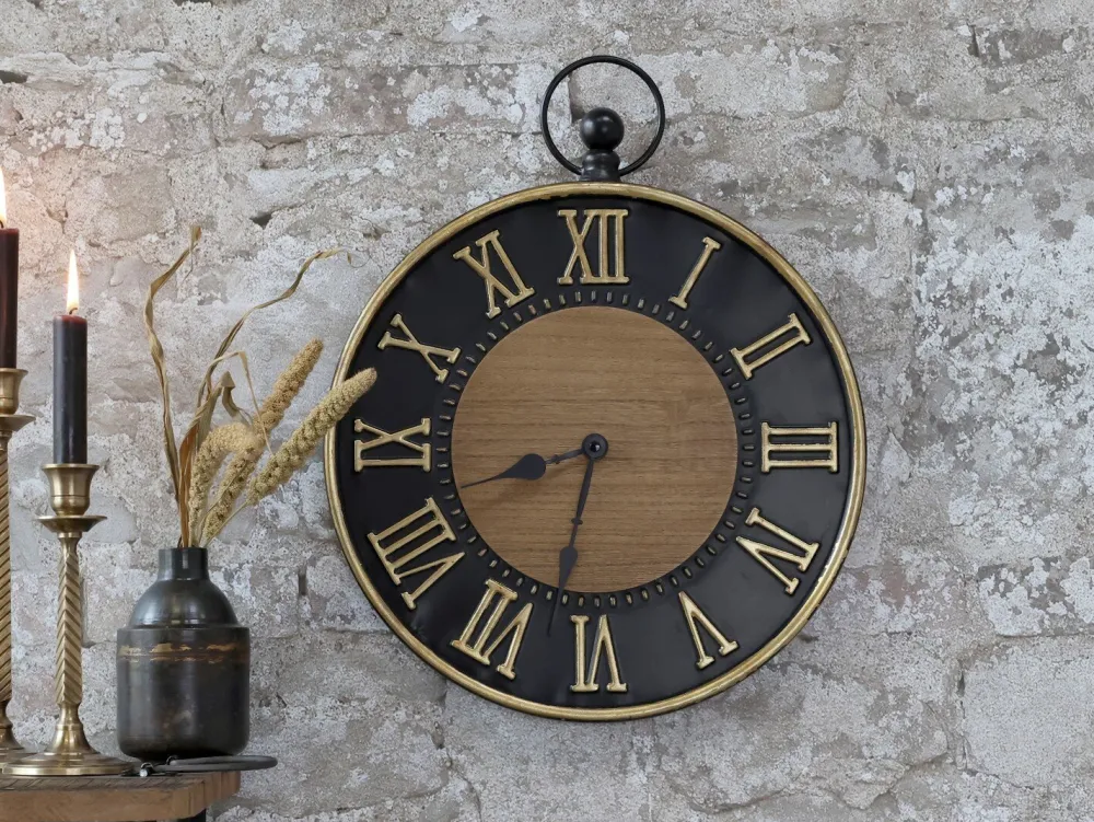 Chic Antique Wanduhr antik schwarz, messingfarben