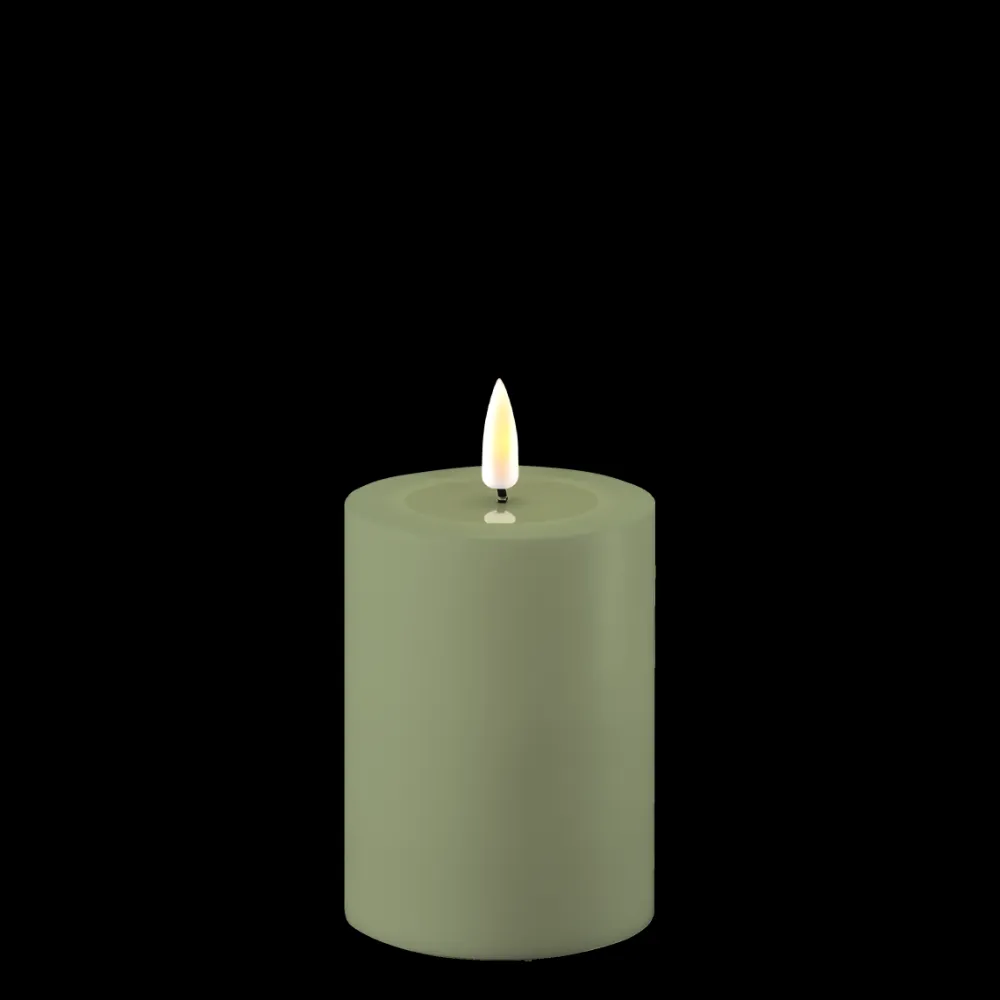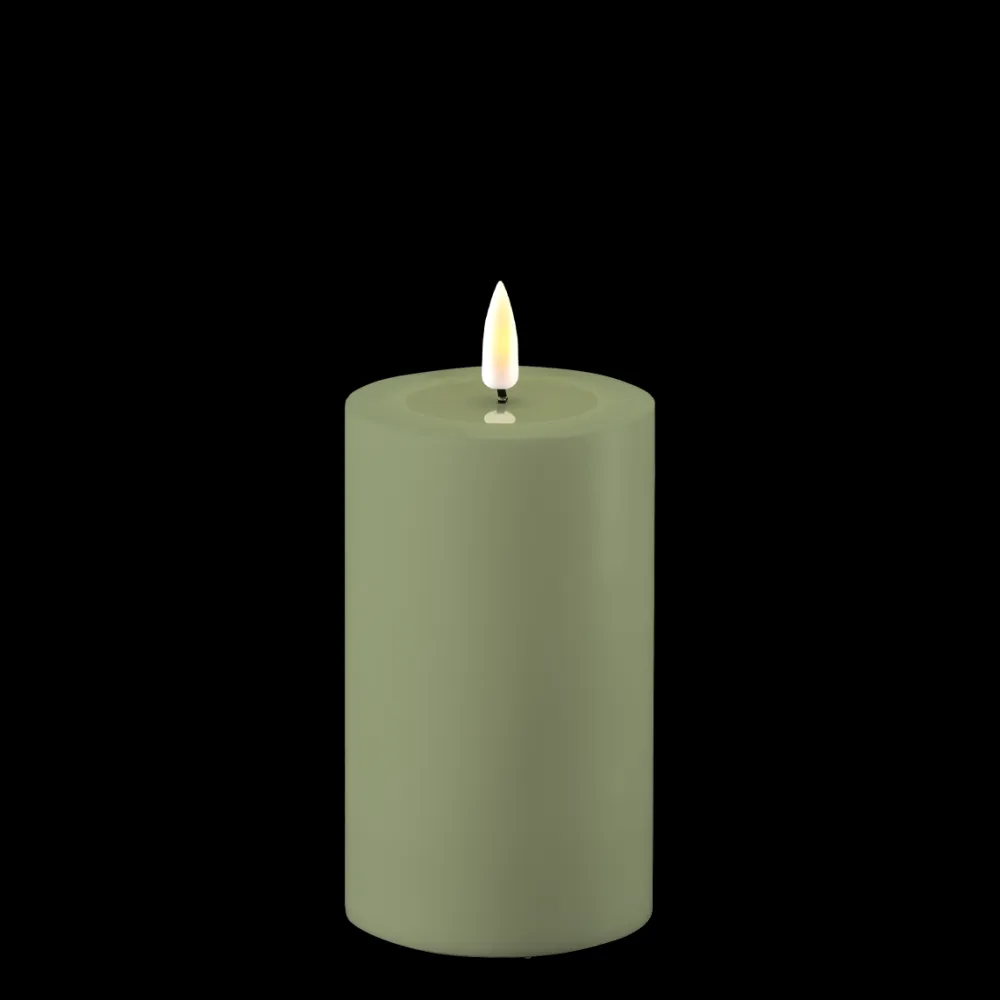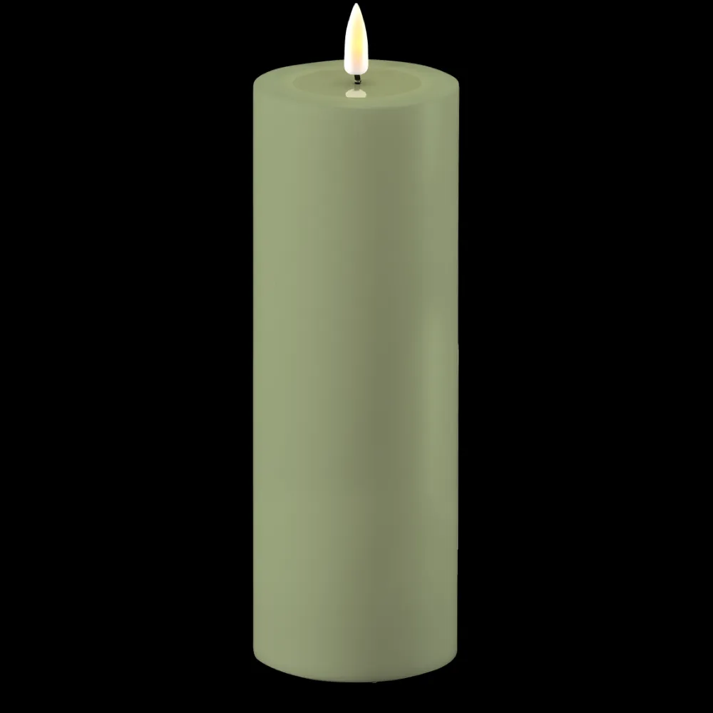 Deluxe Homeart LED Real Flame Outdoor Stumpenkerze staubig grün