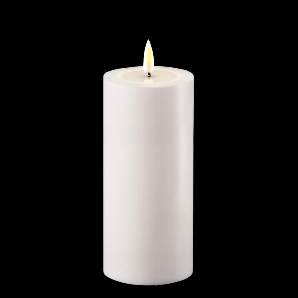 Deluxe Homeart LED Real Flame Outdoor Stumpenkerze weiß