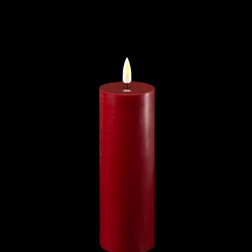 Diese wunderschöne bordeaux rote LED Stumpenkerzen aus Kunstoff von DELUXE Homeart aus Dänemark hat eine täuschend echte Real Flame Flamme, die flackert.