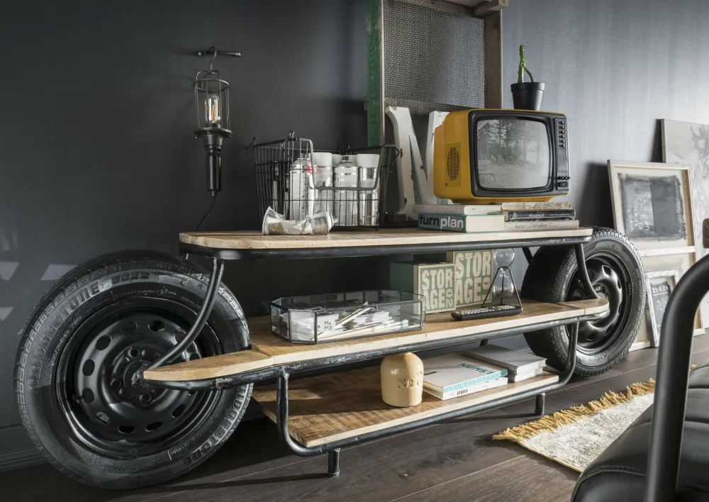 Dieses coole TV-Board Roadtrip bringt Vintage pur zu dir nach Hause. Auf drei massiven Holzböden ist Platz für deine Dekoschätze.