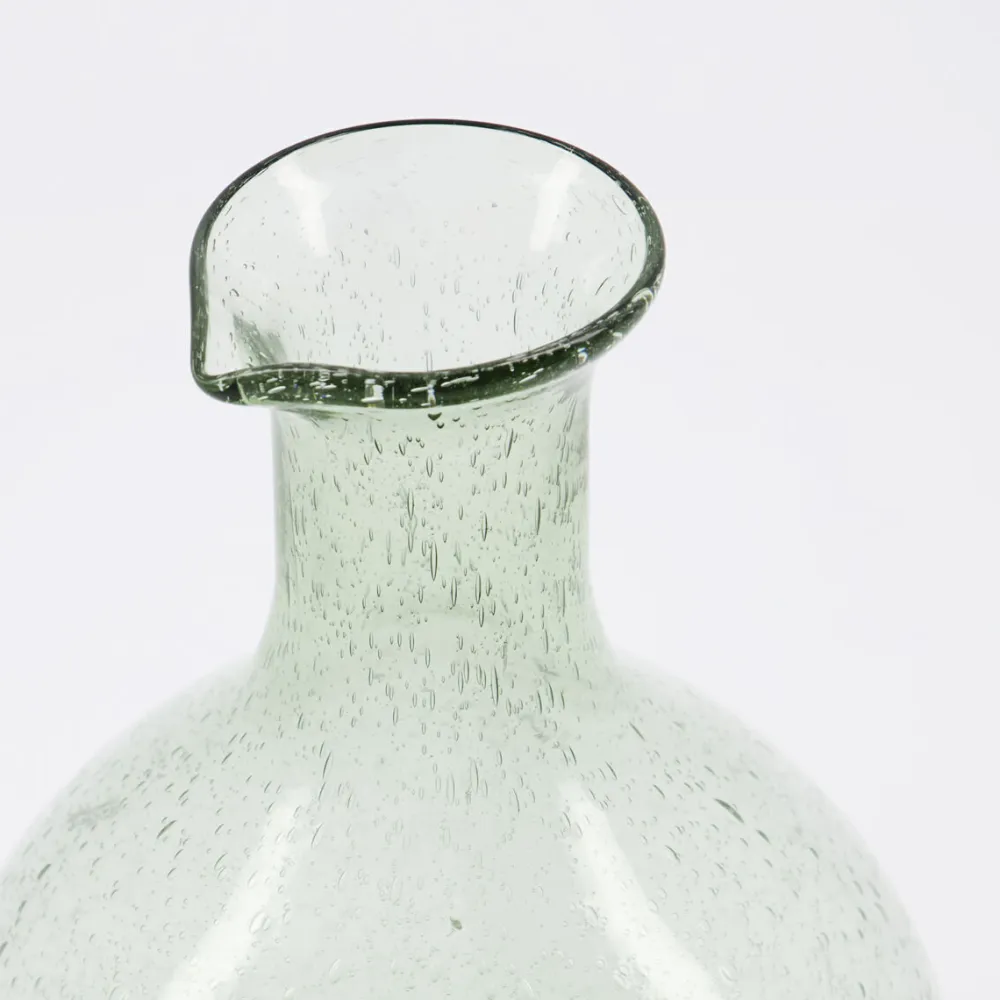Wenn du genauer hinsiehst, wirst du die kleinen Bläschen im Glas bemerken, die für etwas Leichtigkeit sorgen. Kombiniere die Karaffe mit den passenden Gläsern, um einen perfekt abgestimmten Look auf den Tisch zu zaubern. Da die Karaffe handgemacht ist, kann die Größe variieren. Die Kanne ist für den Geschirrspüler geeignet.