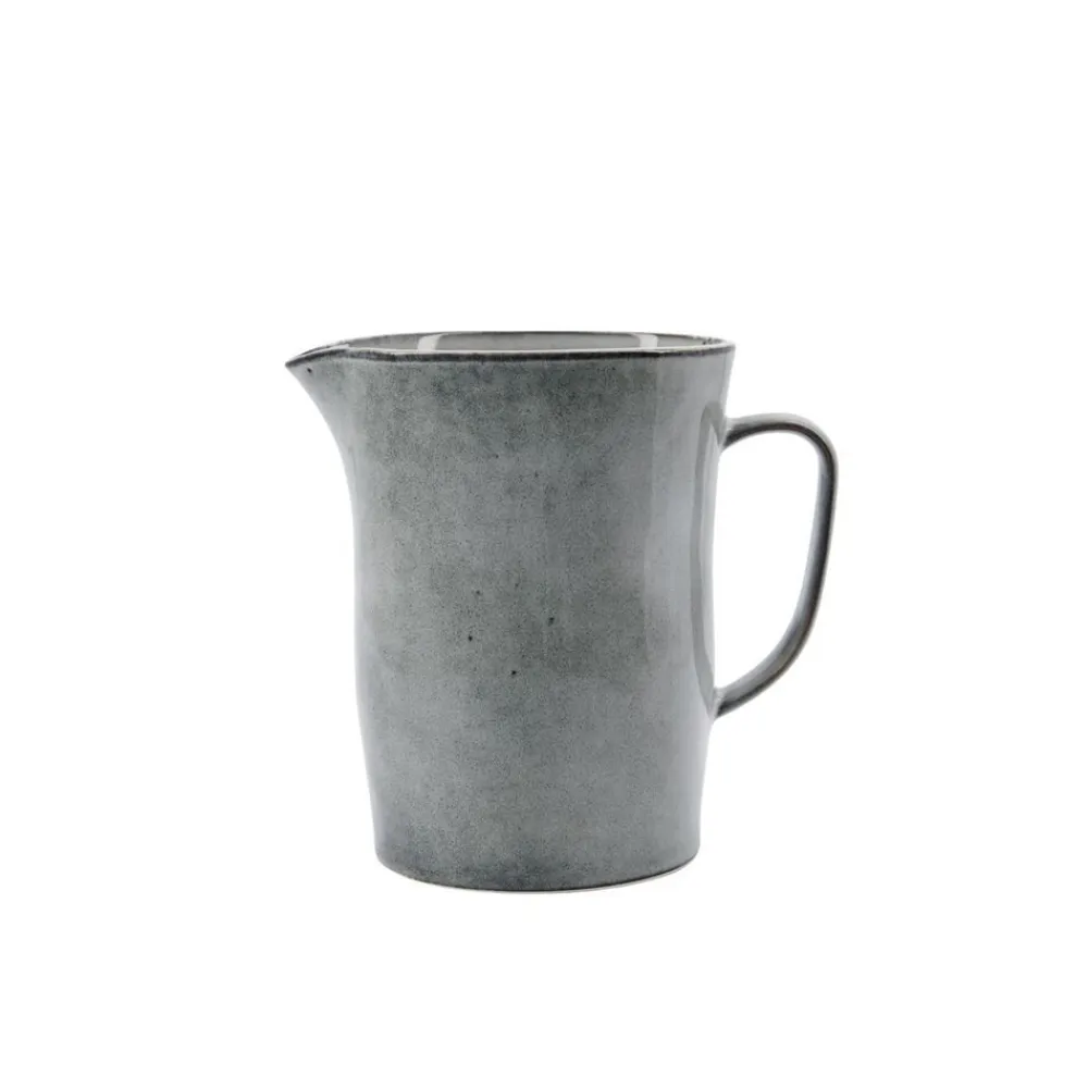 Diese große Kanne, mit einem Volumen von 1000 ml, verleiht deinem Frühstückstisch den letzten Schliff. House Doctor hat sie mit einer grau-blauen Glasur überzogen und mit einem dunklen Kontraststreifen geschmückt. Der große Henkel rundet das harmonische Design gekonnt ab. Verwende die Kanne im Laufe des Tages für Saft, Wasser oder Milch. Du kannst in ihr sogar Kakao aufwärmen, da sie mikrowellengeeignet ist.