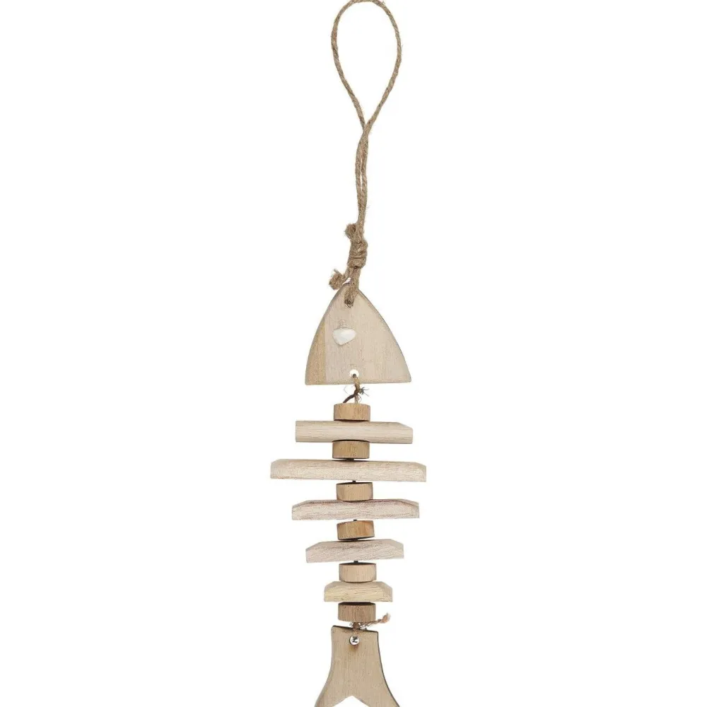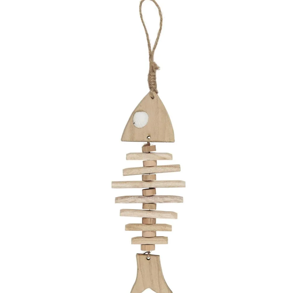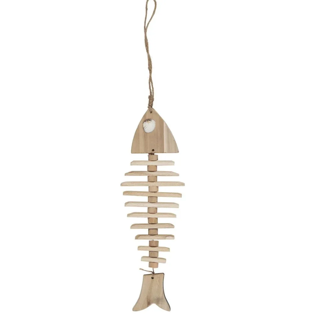 Der Holzfisch hat tolle Details und eine Juteschnur zum Aufhängen. Der natürliche Look passt wunderbar zu anderer Holz-Dekoration und maritimen Wohnaccessoires.