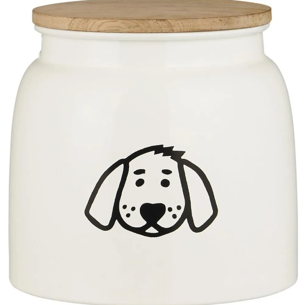 Dose für Hundefutter weiss mit Hundemotiv und Holzdeckel von IB Laursen aus Dänemark. Erlebe eine gemütliche Fütterungszeiten mit dieser funktionalen und schönen Hundefutterdose. Die Dose hat einen schönen Deckel aus Mangoholz, und das lächelnde Hunde-Gesicht auf der Vorderseite fügt nicht nur einen Hauch von Charme hinzu, sondern zeigt auch deutlich, dass hier das Lieblingsfutter Ihres Hundes aufbewahrt wird. Die Dose ist Teil unserer kleinen Serie von Haustierprodukten, zu der auch Hundefressnäpfe zum Servieren des Futters gehören.