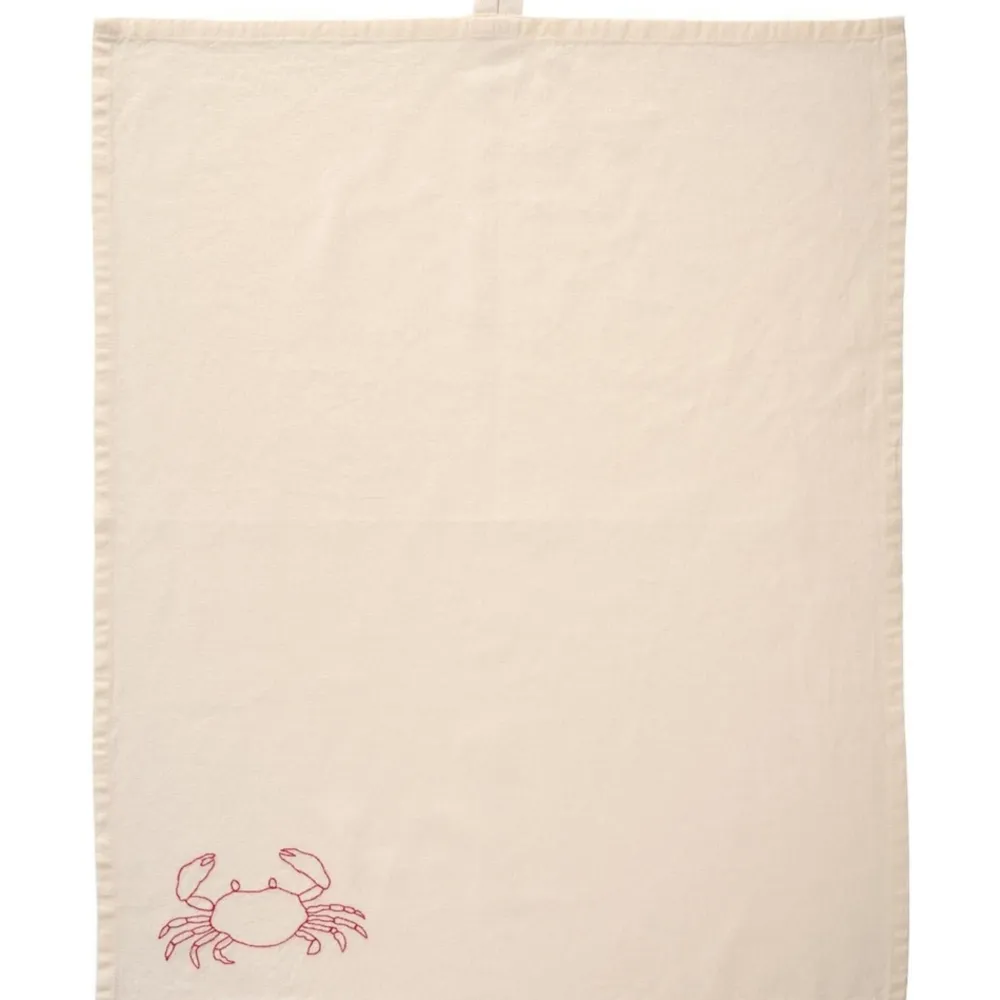 Klassisches Geschirrtuch in der klassischen Butter Cream-Farbe mit einer süßen Stickerei einer Krabbe. Ideal, um Ihrer Kücheneinrichtung ein verspieltes maritimes Detail hinzuzufügen. Perfekt für den täglichen Gebrauch oder als dekoratives Geschenk.