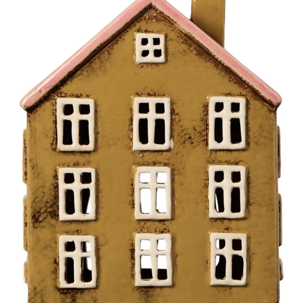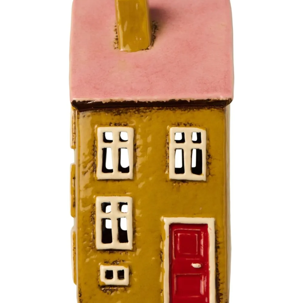 Keramikhäuschen Teelicht Nyhavn rote Tür an Seite von IB Laursen aus Dänemark. Keramikhaus inspiriert von den farbenfrohen Häusern in Nyhavn, Kopenhagen. Jedes Haus in der Serie ist ein Unikat aus handgefertigter Keramik mit rustikalem Charme. Schaffen Sie eine gemütliche Atmosphäre mit Kerzenlicht oder einer Lichterkette hinter den Fenstern. Arrangieren Sie die Häuser einzeln oder als charmantes kleines Viertel.