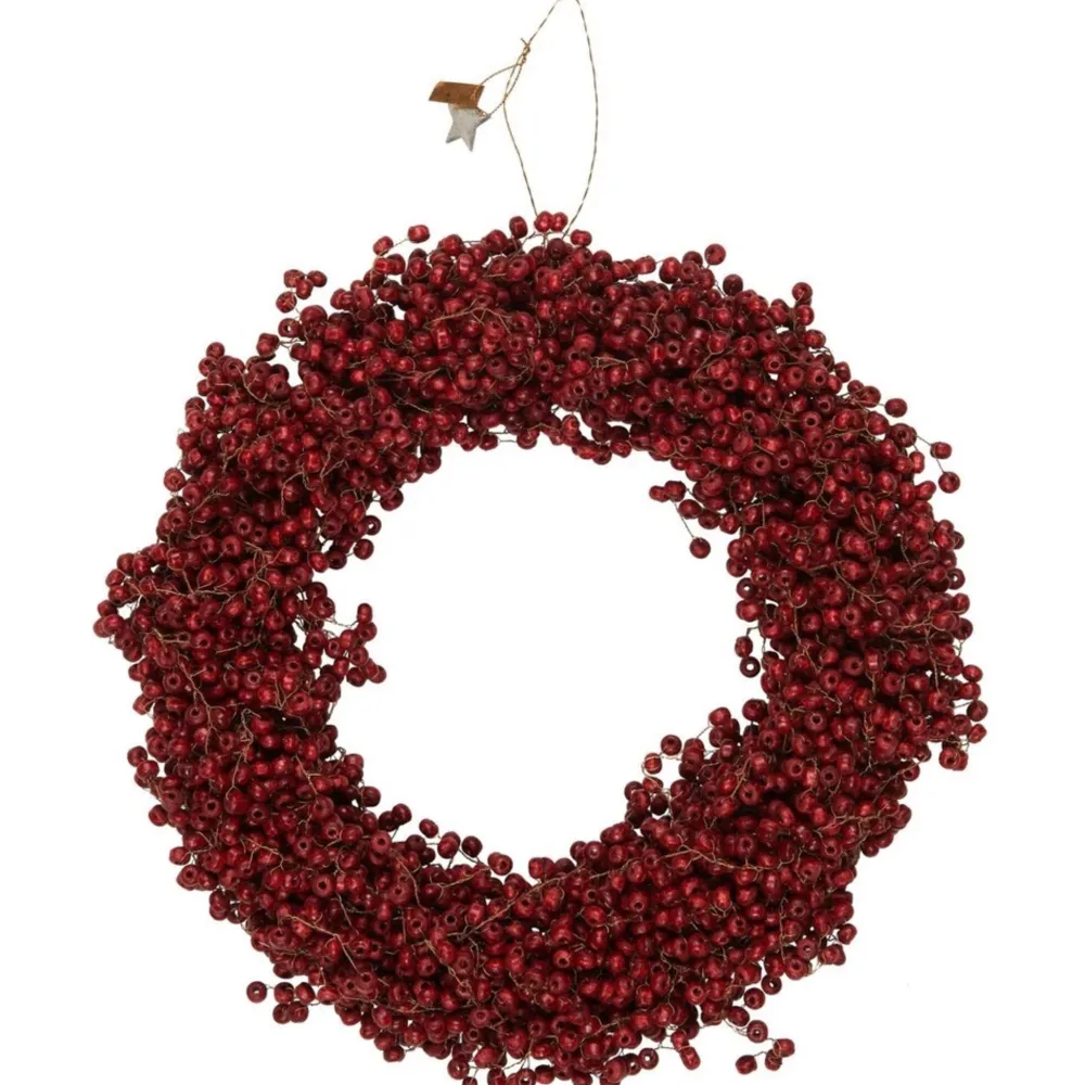 Hängen Sie diesen wunderschönen Ewigkeitskranz aus Holzperlen auf, oder verwenden Sie ihn in einer Dekoration, um der Einrichtung eine persönliche und einzigartige Note zu verleihen. Der Kranz ist sorgfältig handgefertigt, und die vielen dunkelroten Holzperlen verleihen ihm einen gemütlichen und warmen Ausdruck – perfekt, um die ganz besondere Weihnachtsstimmung einzufangen oder das ganze Jahr über als Dekoration im Haus zu dienen.
