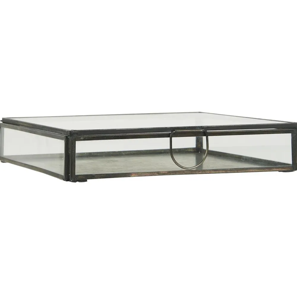 Bewahre wertvolle Sammlerstücke, Andenken oder andere wichtige Gegenstände in dieser wunderschönen Box aus Glas auf. Die Kiste hat einen Deckel und besteht aus Glas und Metall. Die Kiste hat ein schlichtes Design, setzt jedoch gleichzeitig elegante Akzente in deinem Zuhause.