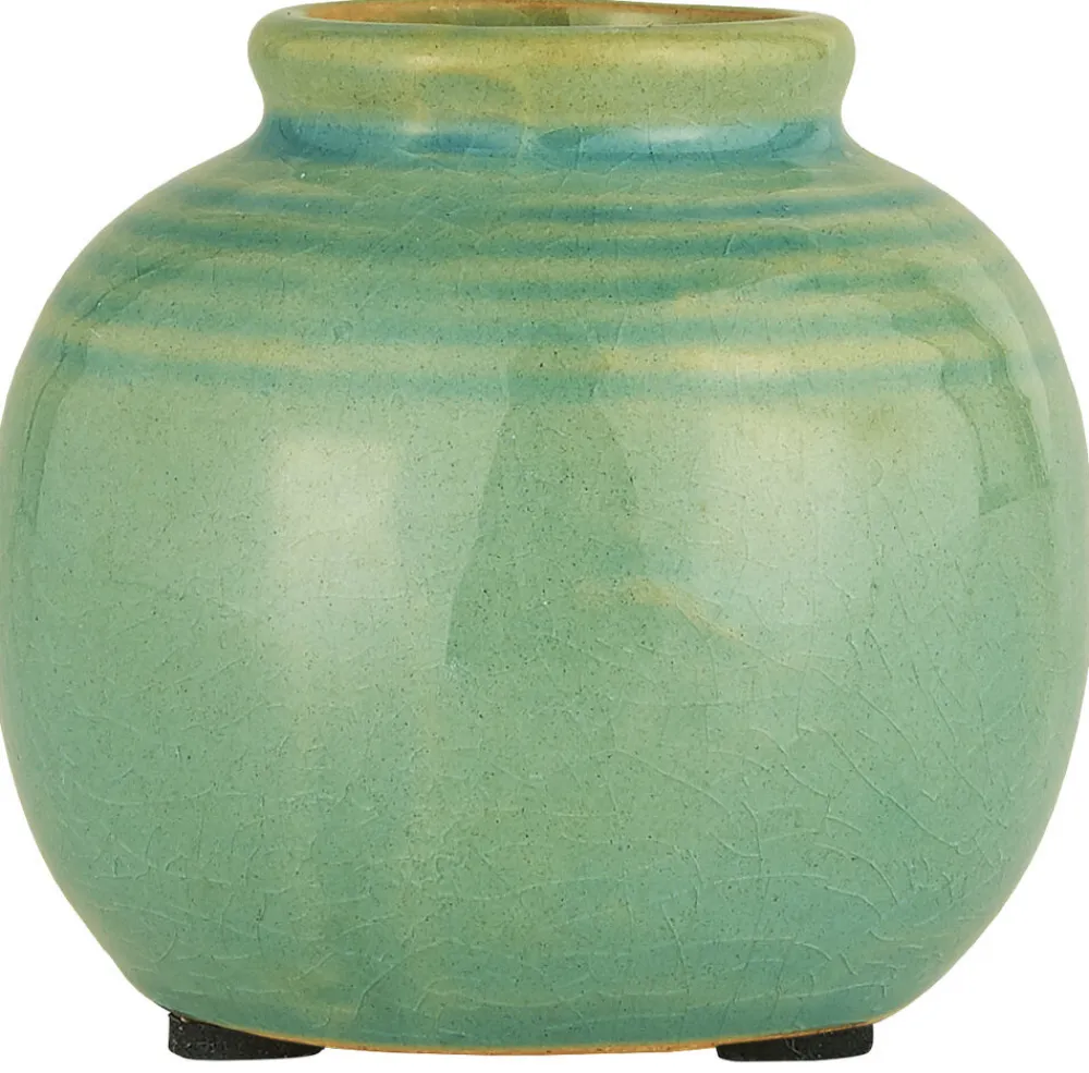 Die Keramik Vase besitzt zudem eine krakelierte Oberfläche, also ein feines Riss- oder Sprungnetz, welches ihr einen besonderen Touch verleiht.