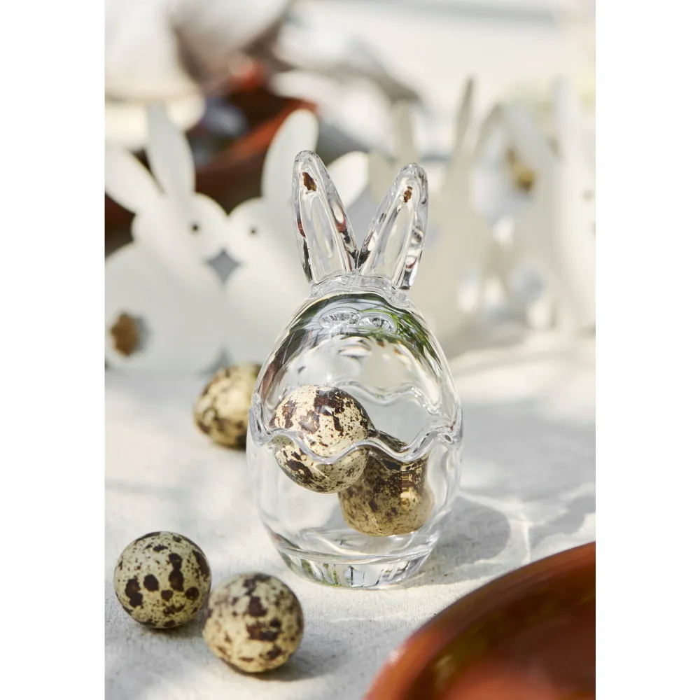 Dieses Osterei aus Glas mit süßen Hasenohren und in zwei Teilen ist ein lustiges und dekoratives Detail für Ihre Osterdekoration. Perfekt als festliche Dekoration oder zum Verstecken kleiner Überraschungen.