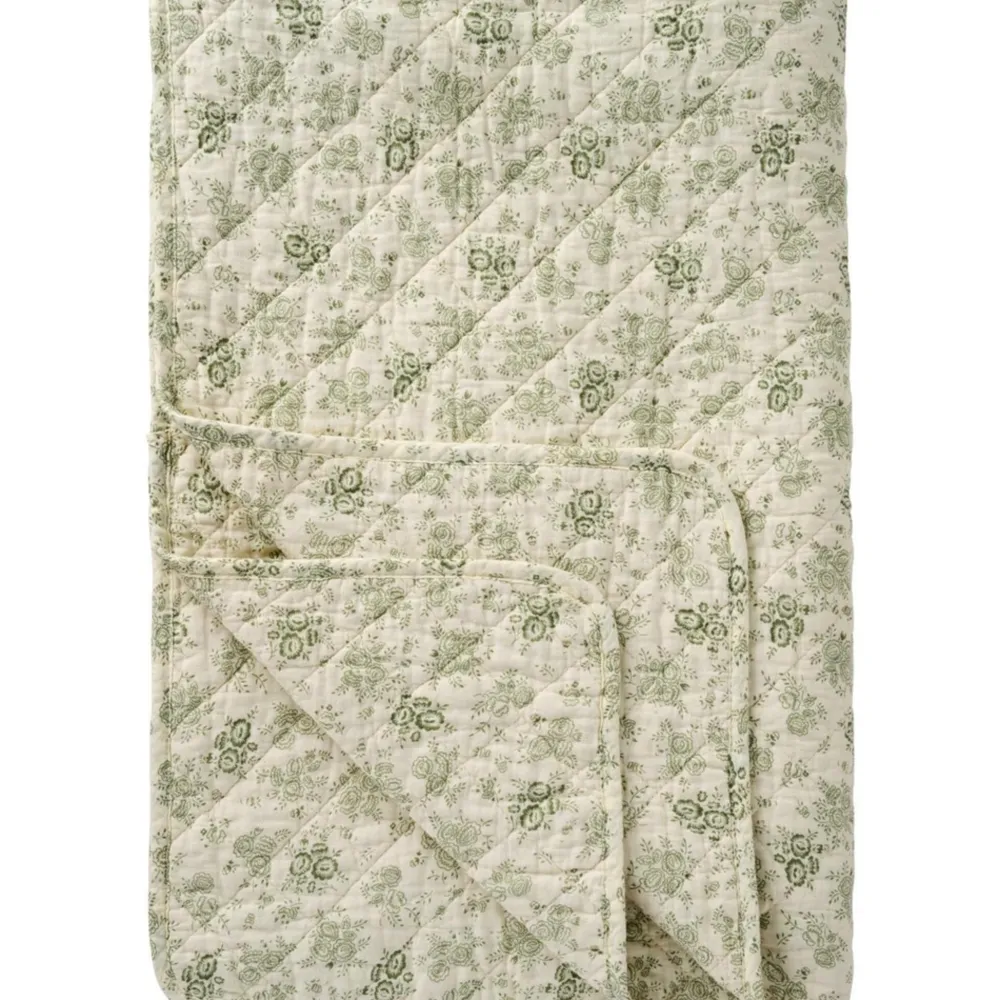 Wunderschöne, wattierte Decke aus Baumwolle in herrlichen Farben und mit dekorativem Blumenmuster.