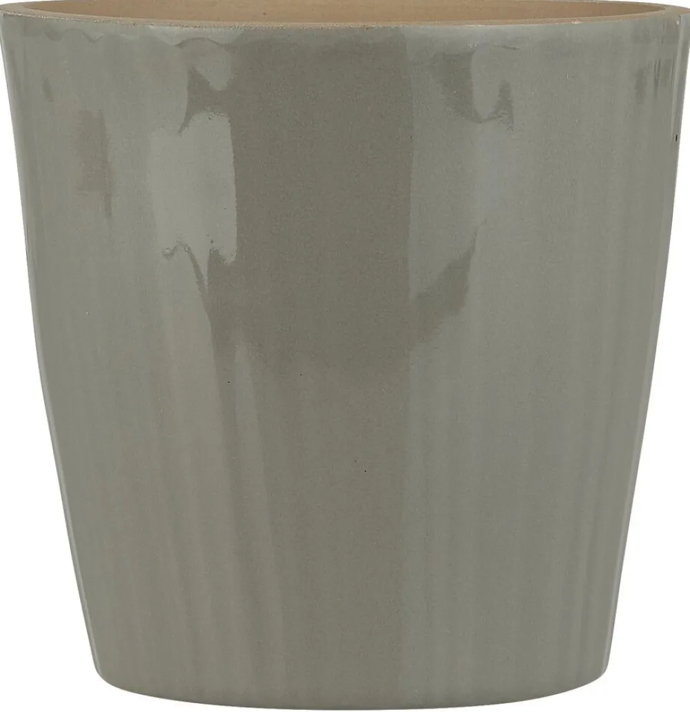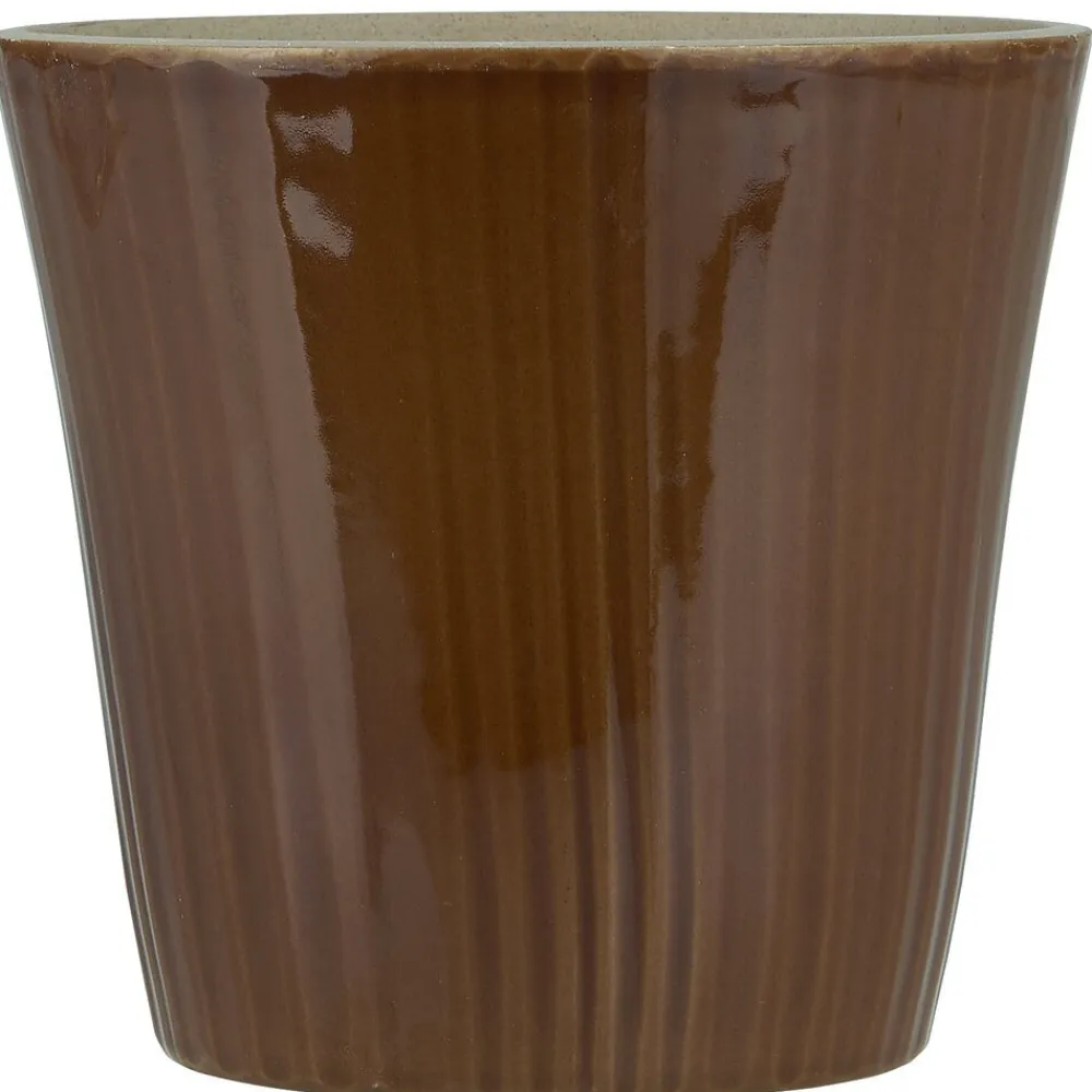 Schöner Steingut Übertopf in konischer Form, mit Rillen von IB Laursen aus Dänemark