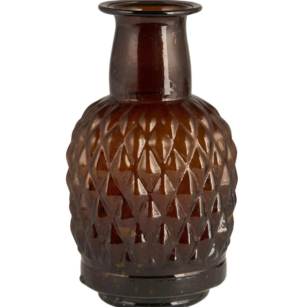 Glas. Glasvase mit langem, elegantem Hals, verziert mit einem feinen Karomuster, das direkt in das Glas geprägt ist. Die mundgeblasene Qualität der Vase verleiht ihr einen raffinierten Ausdruck.