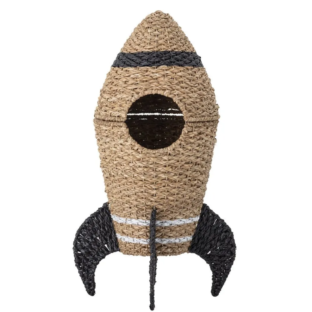 Nutze diesen wundervollen, handbemalten Korb Cosmina von Bloomingville Mini als praktische Aufbewahrungsmöglichkeit im Kinder Zimmer. In Form einer Rakete macht es mit diesem Korb aus Seegras und Rattan sogar Spaß aufzuräumen. Er bietet Platz für Spielzeug, Kuscheldecken oder Wäsche.