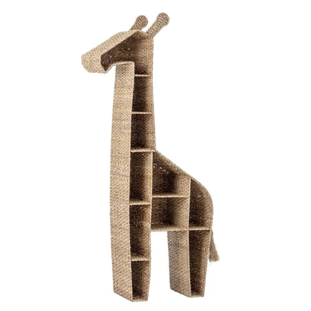 Dieses bildschöne Regal Kalu von Bloomingville Mini ist Der Hingucker im Kinder Zimmer. In Form einer Giraffe aus Bankuan Gras und Rattan gefertigt ist es eine echte Besonderheit und bietet Platz für Bücher, Spielzeug und Dekoartikel. Die einzelnen Regalböden können mit bis zu 0,5 kg belastet werden.