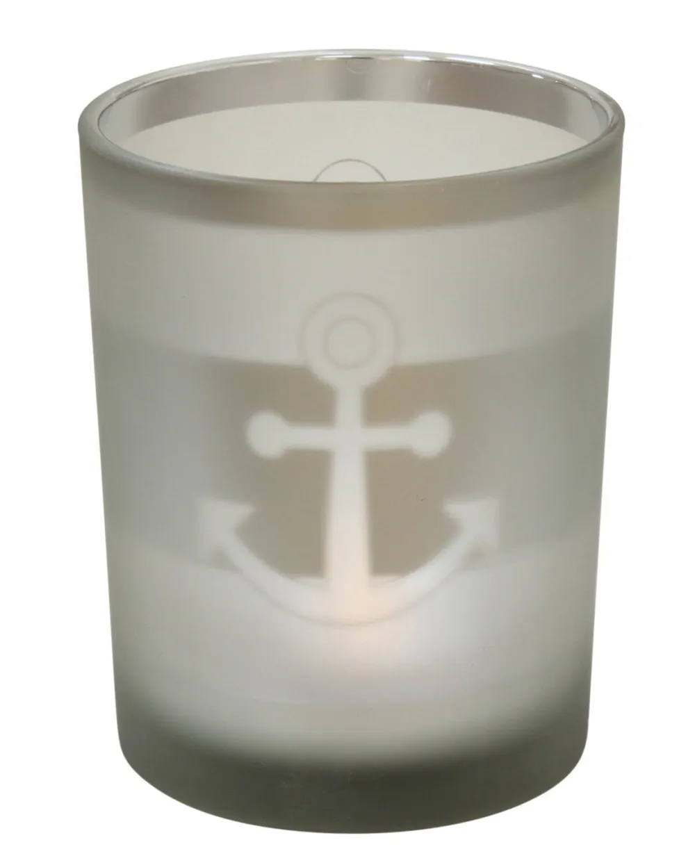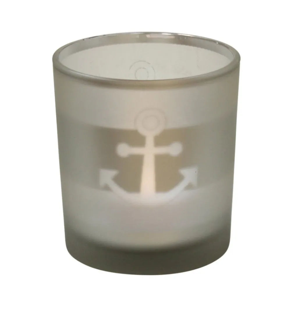 Dieses schöne Teelichtglas mit Ankermotiv von Krasilnikoff ist der maritime Dekoartikel für gemütliche Abende. Das schöne Milchglas mattiert das Kerzenlicht und lässt den Anker noch durchschimmern. Das sorgt für eine gemütliche Atmosphäre. Das Glas ist in zwei größen erhältlich.