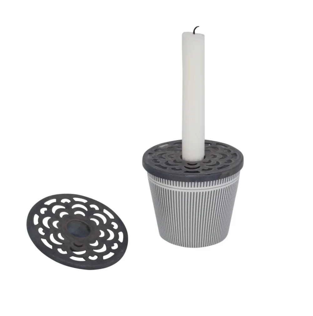 Dieser feine Kerzenhalter Aufsatz aus Zink ist in 3 Größen erhältlich und passt zu den verschiedenen Krasilnikoff Bechern und Tassen.