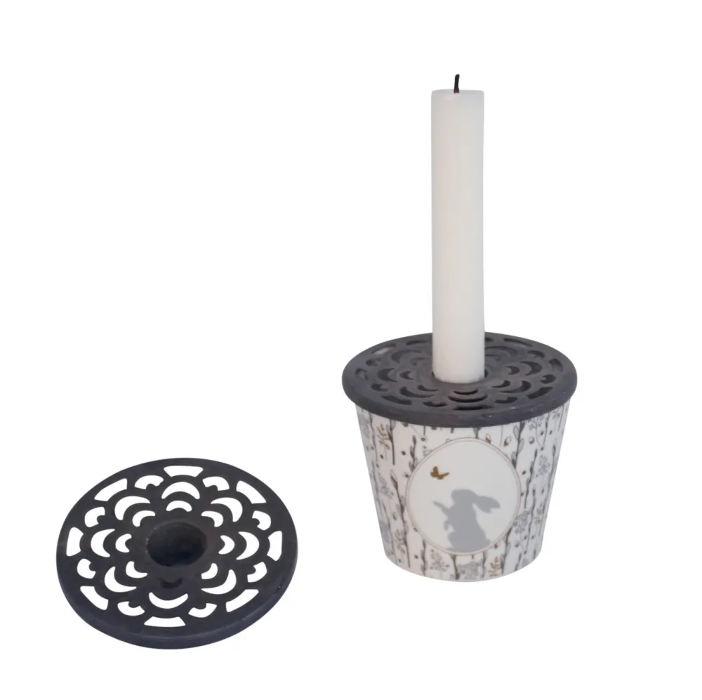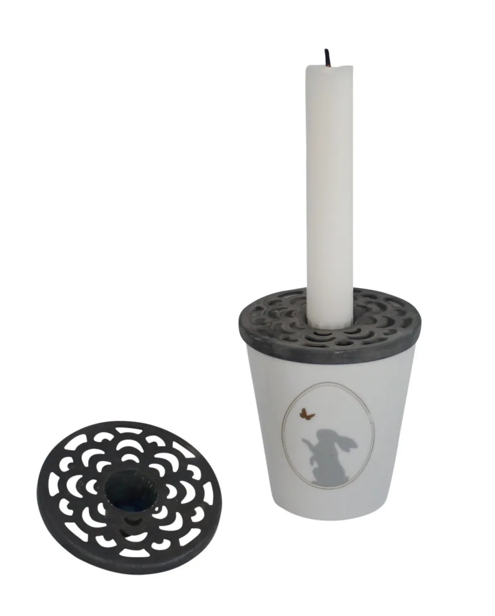 Der Aufsatz wird ohne Porzellan Becher und ohne Kerze geliefert.