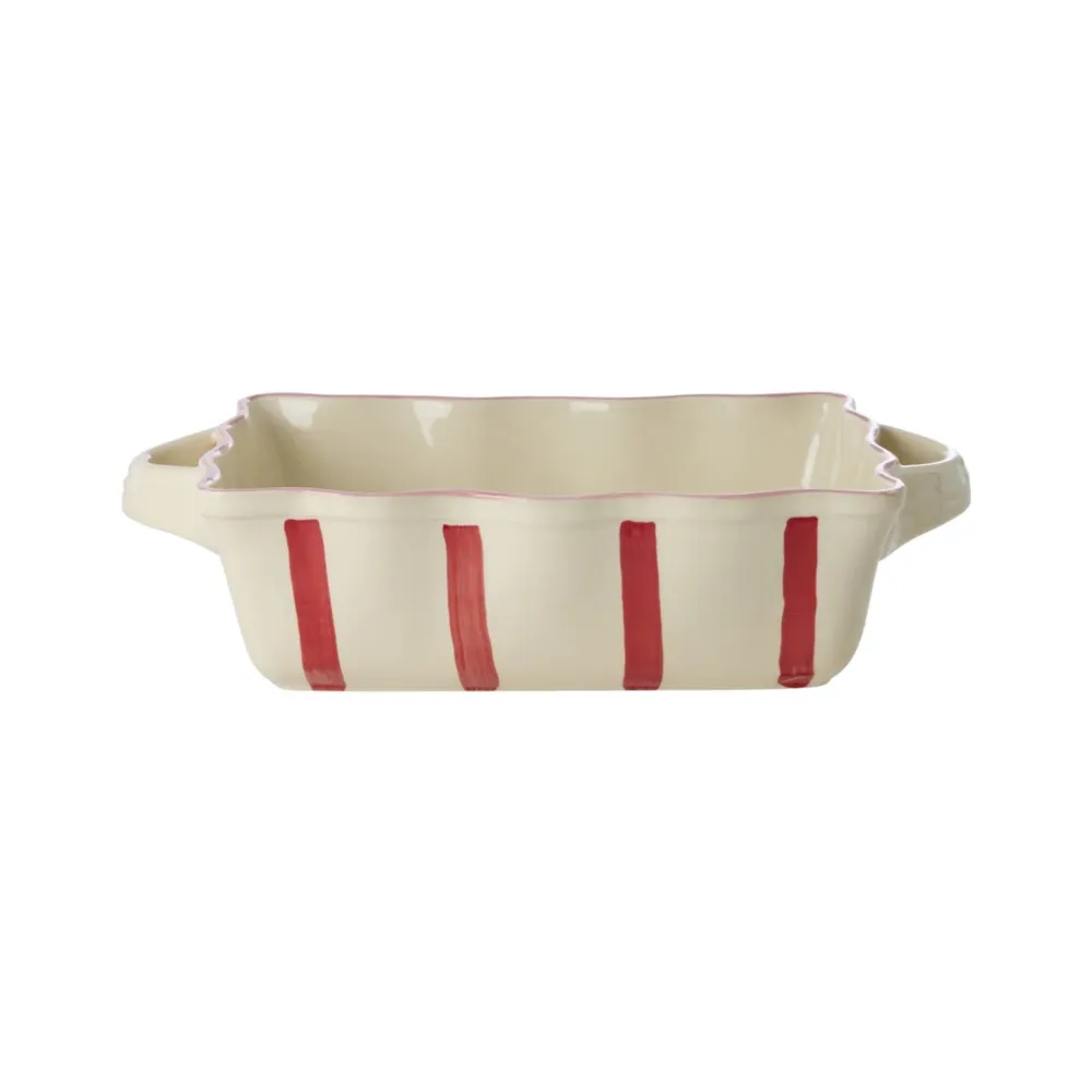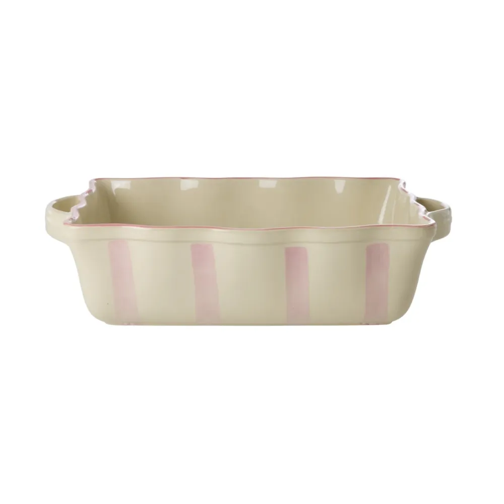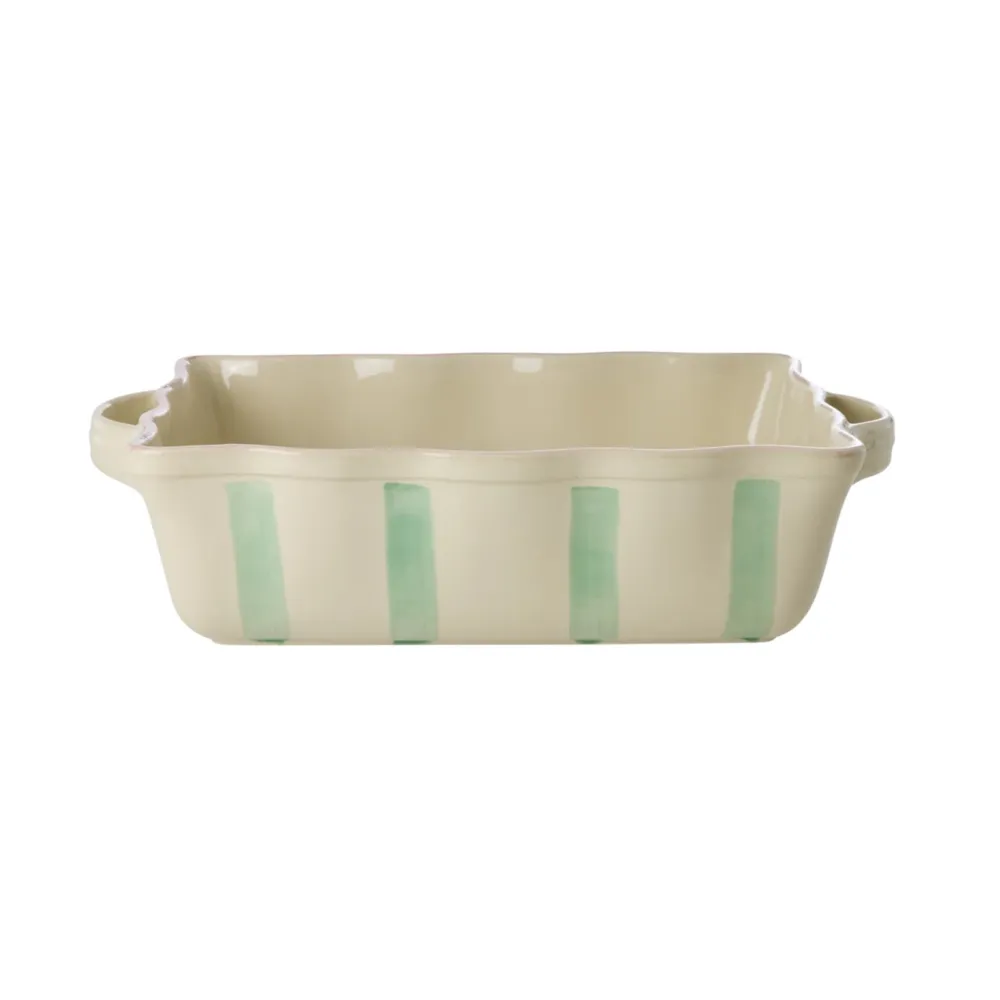 Wunderschöne Steingutform … Die wunderschönen Streifen und farbigen Ränder wurden von talentierten Kunsthandwerkern handbemalt – jede Form ist ein Unikat! Beim Kauf von Keramik sind mit der Zeit kleine Risse zu erwarten, da das Material „lebt“ und immer „funktioniert“.