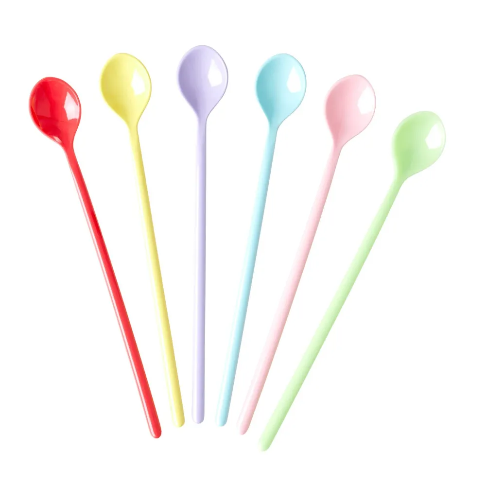 Die Latte Löffel von RICE sorgen für sommerliche Gefühle und überzeugen durch ihre farbenfrohe Natur. In jedem Set sind 6 unterschiedliche Farben, welche sich idealerweise mit den anderen Melamin Produkten von RICE kombinieren lassen. Ob nun der Milchshake oder das Dessert, mit diesen Latte-Löffeln kannst du beides ansehnlich und schmackhaft anrichten.