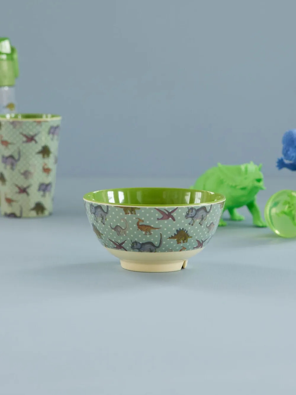 Entdecke die Melamin-Schüssel RICE Melamin Schüssel New Dino Print mit coolen Dinos! Diese Schüssel wurde entwickelt, um einen Farbtupfer auf den Esstisch zu bringen und den kleinsten Familienmitgliedern Freude zu bereiten.