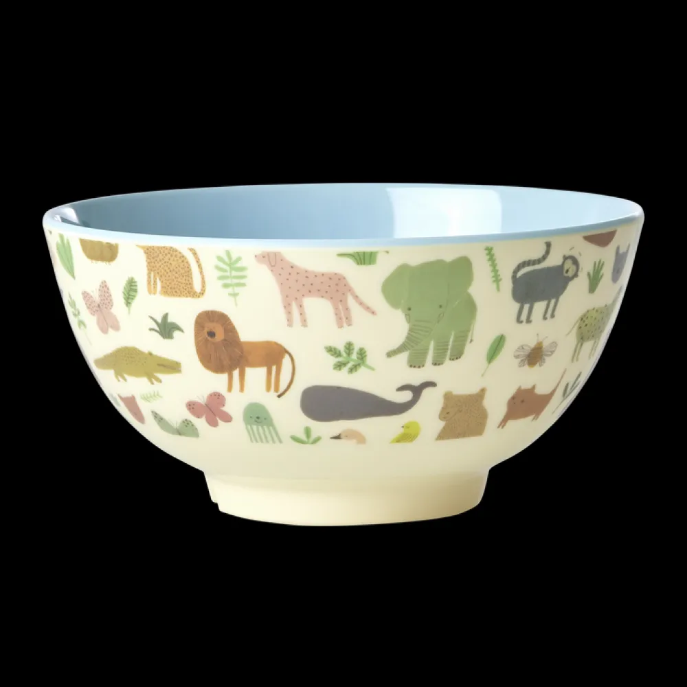 Hol dir jetzt die süße RICE Melamin Schüssel Sweet Jungle Print! Diese Kinderschüssel ist der perfekte Begleiter für deine Kleinen bei den Mahlzeiten. Die Außenseite ist mit niedlichen Dschungeltieren verziert und das Innere in einem zarten Rosa oder einem dezenten Dusty Blue gehalten.