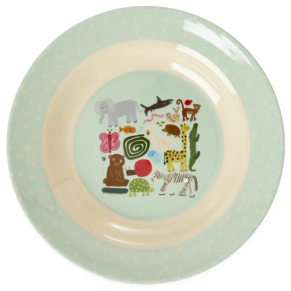 Wunderschöner tiefer Melaminteller für Kinder mit „Wildlife“-Print von Rice aus Dänemark.