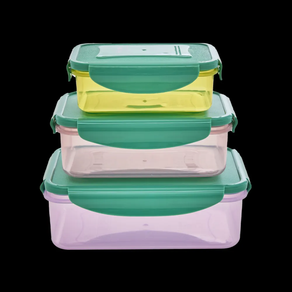 RICE Rechteckige Plastik Lebensmittelboxen – Mehrfarbig – 3er Set