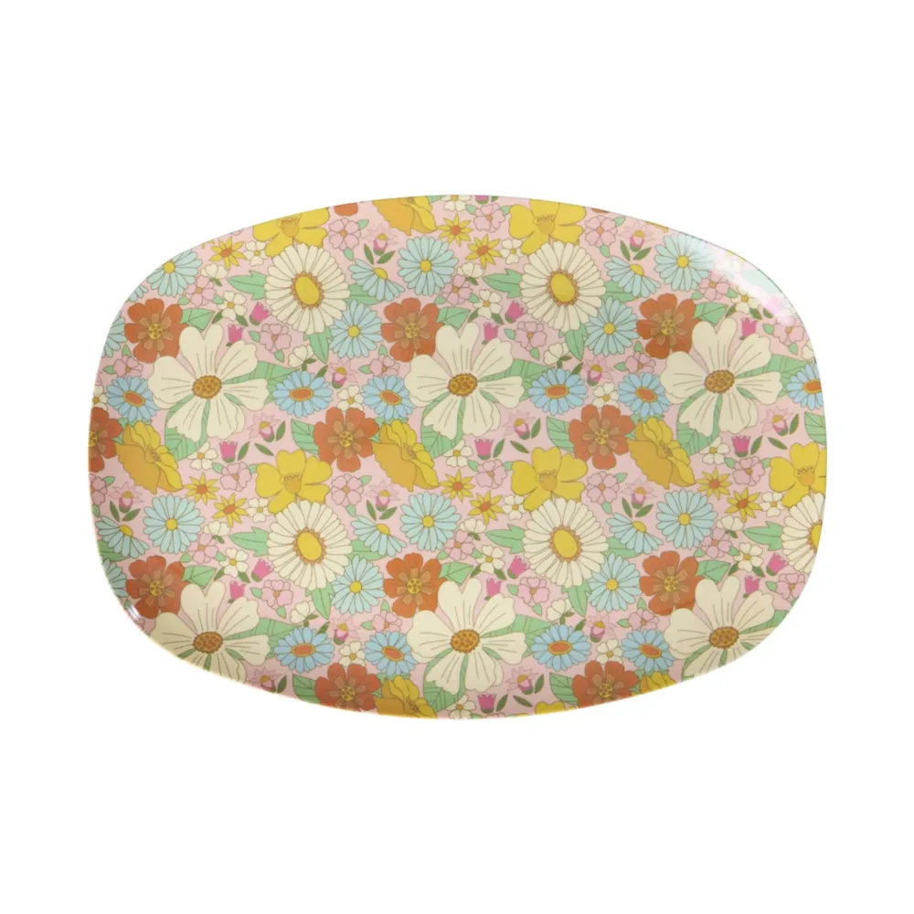 RICE Rechteckiger Teller aus Melamin Flower Power